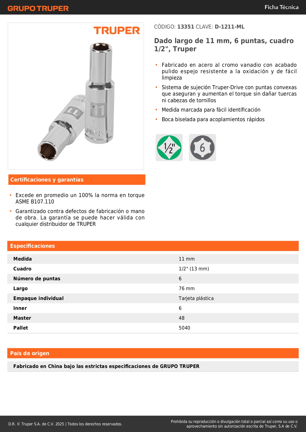 -Sistema de sujeción Truper-Drive con puntas convexas que aseguran y aumentan el torque sin dañar tuercas ni cabezas de tornillos
