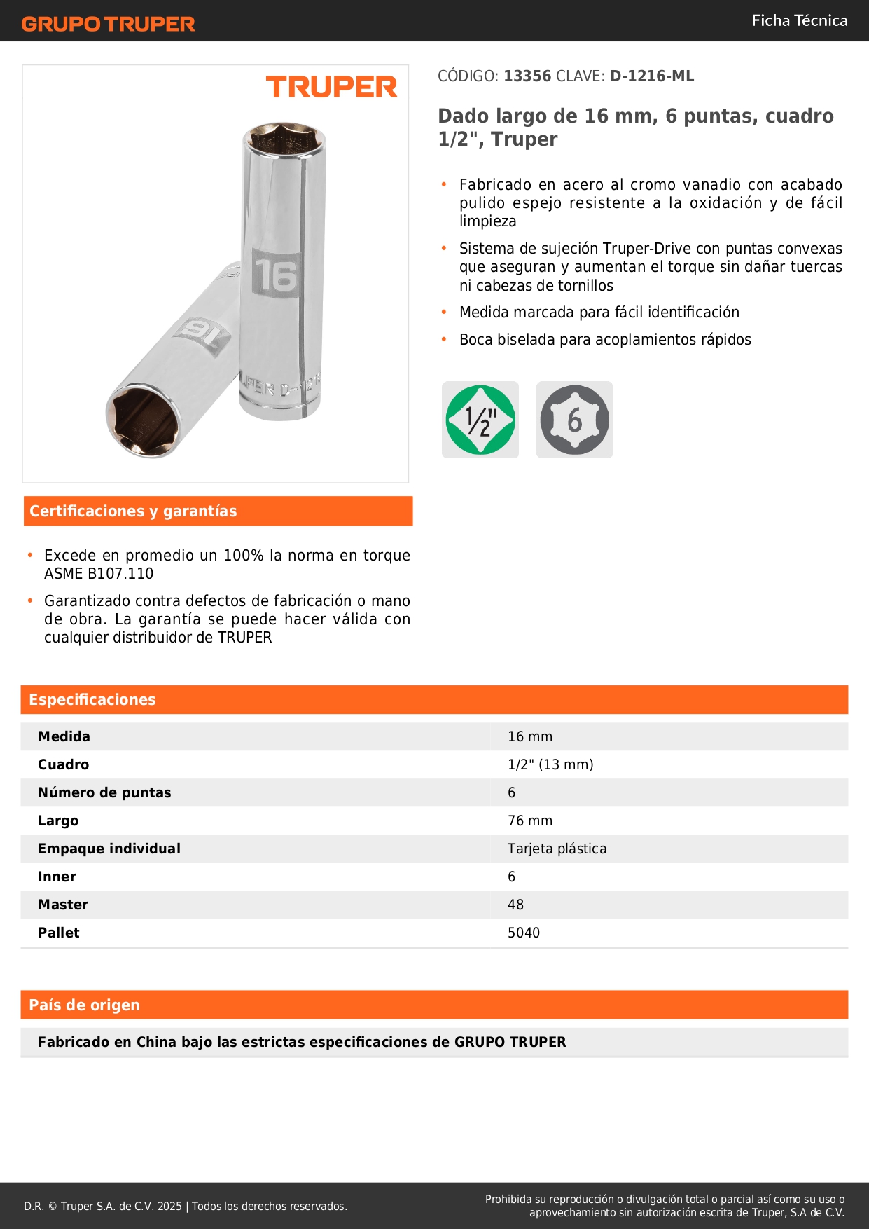 -Sistema de sujeción Truper-Drive con puntas convexas que aseguran y aumentan el torque sin dañar tuercas ni cabezas de tornillos