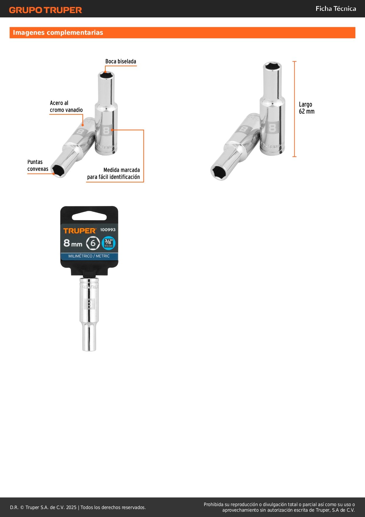 -Sistema de sujeción Truper-Drive con puntas convexas que aseguran y aumentan el torque sin dañar tuercas ni cabezas de tornillos