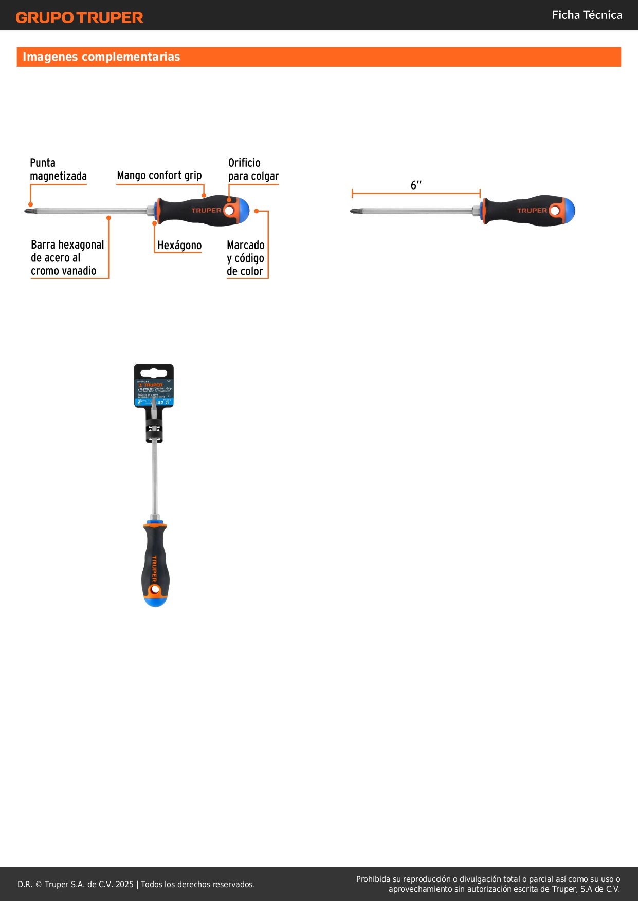Desarmador de cruz 1/4" x 6" mango Comfort Grip, Truper