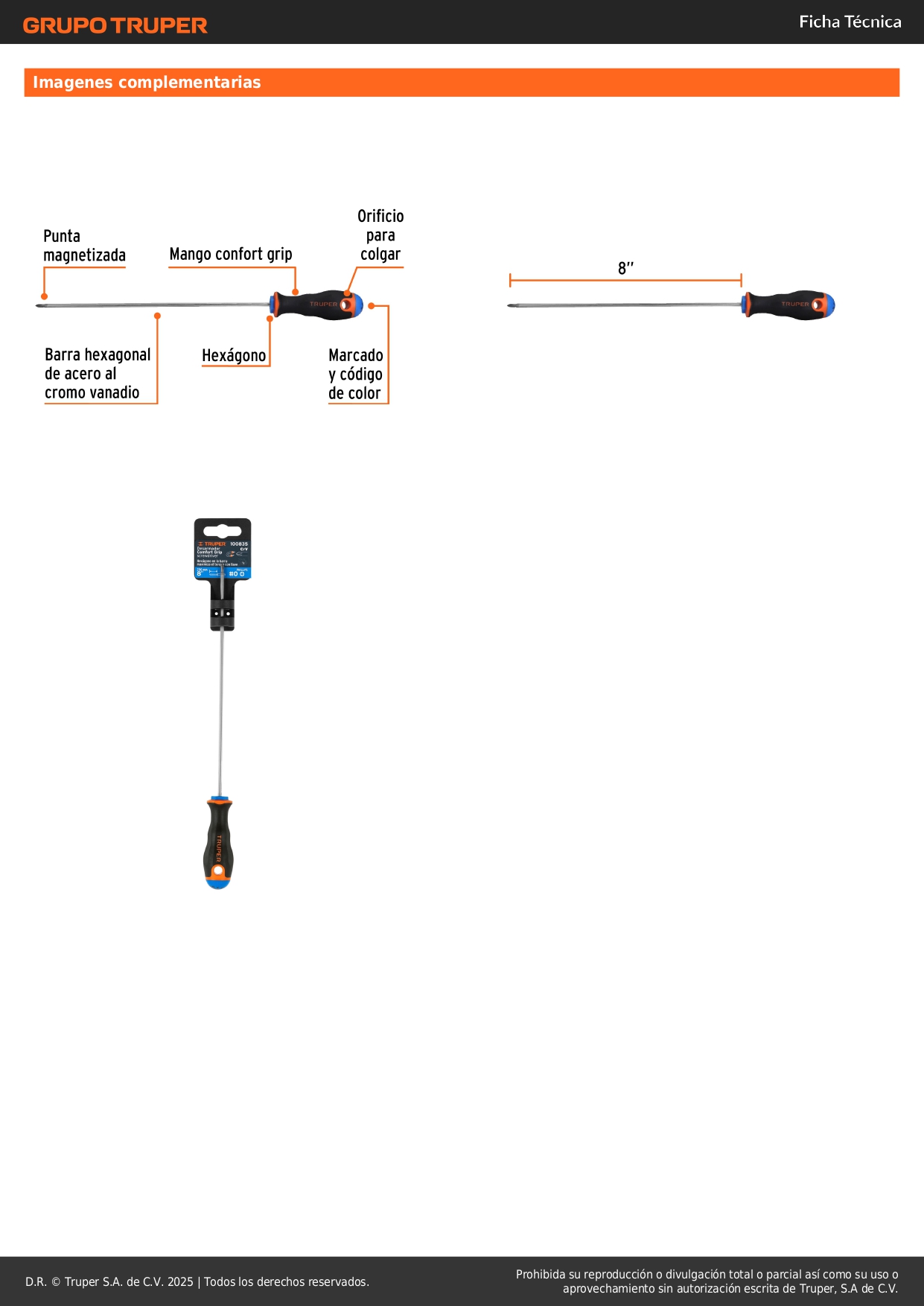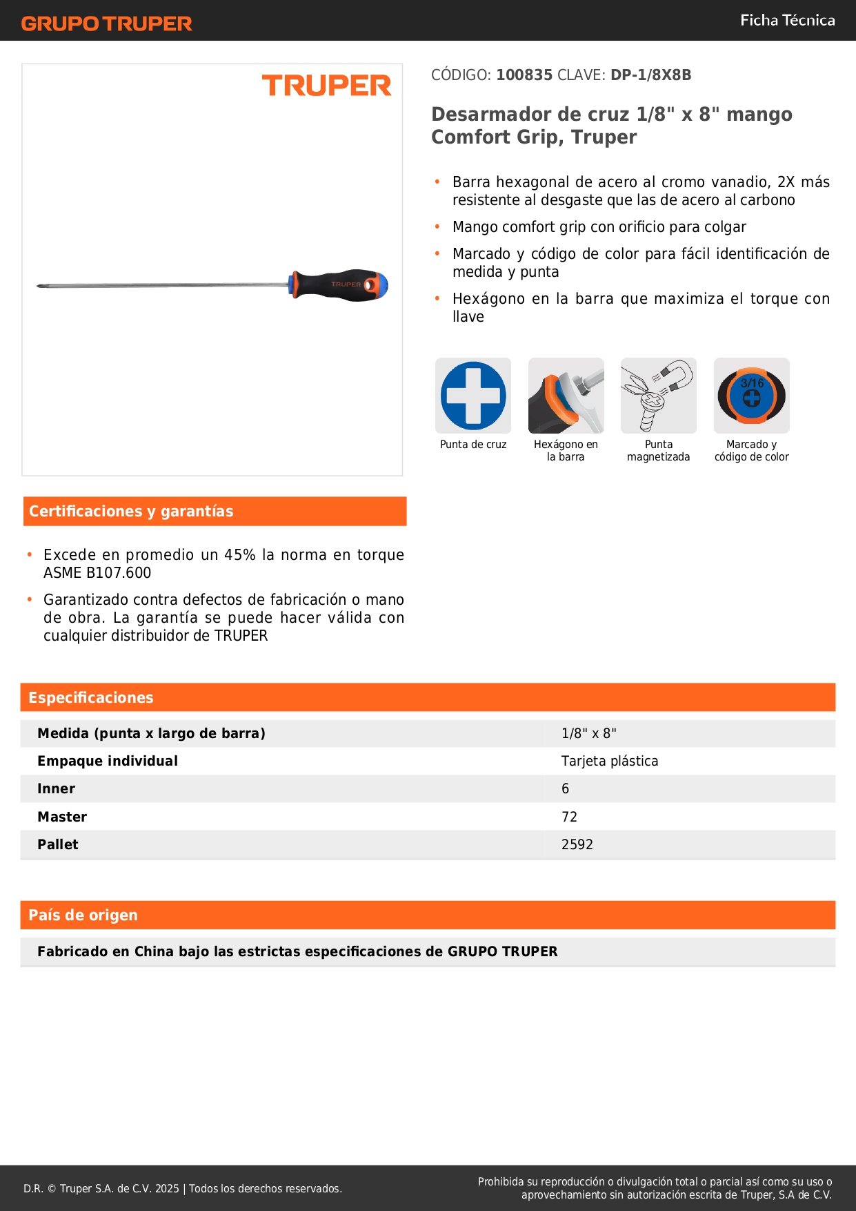 Desarmador de cruz 1/8´´ x 8´´ mango comfort grip, truper