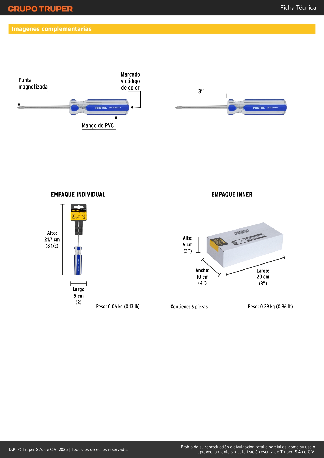 Desarmador de cruz 3/16 x 3´´ mango de pvc, pretul S/ 3.90 Agregar al carro Avísame cuando llegue -Barra de acero al carbono-Mango de PVC-Marcado y código de color para fácil identificación de medida y punta