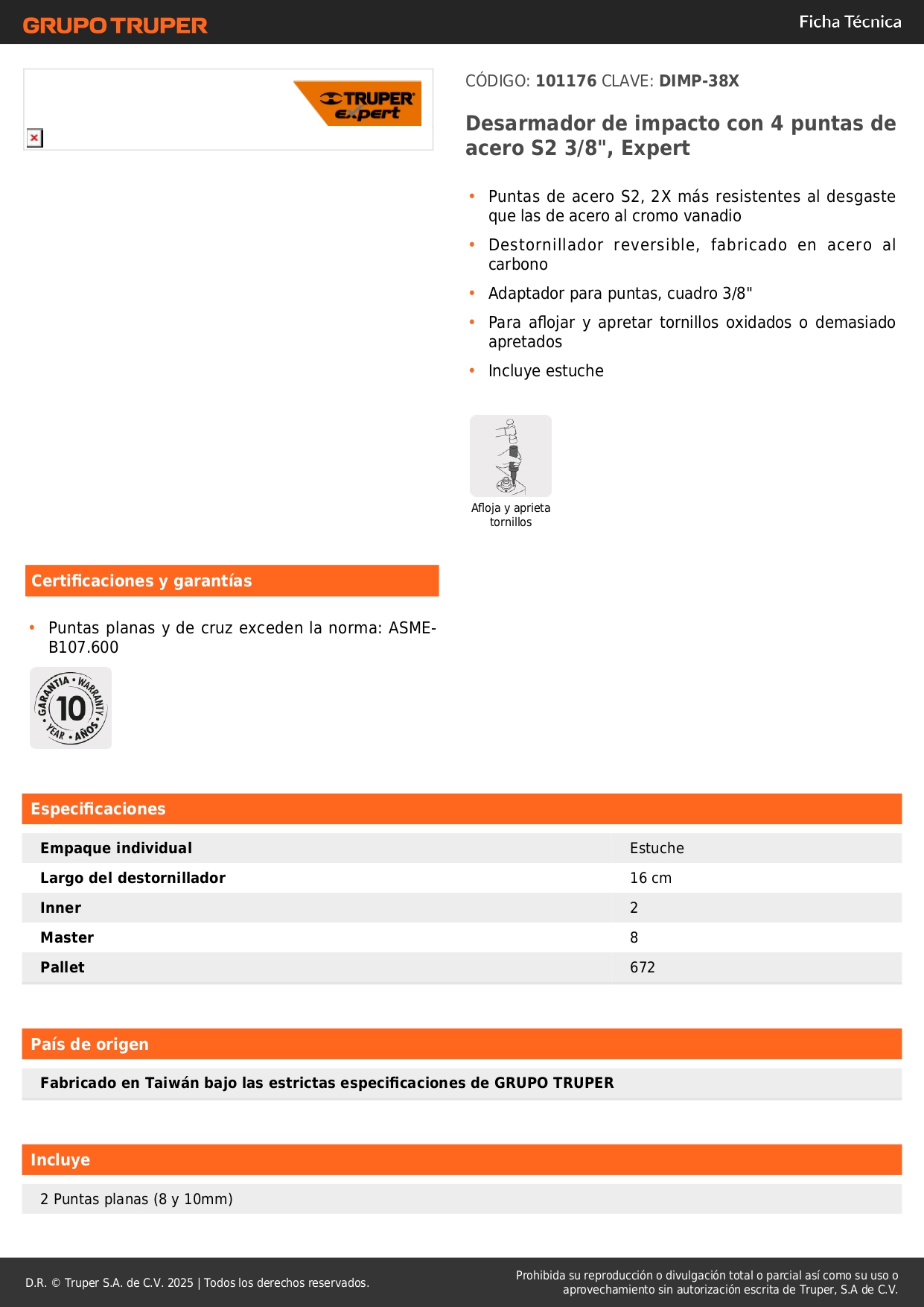 Desarmador de impacto con 4 puntas de acero S2 3/8", Expert