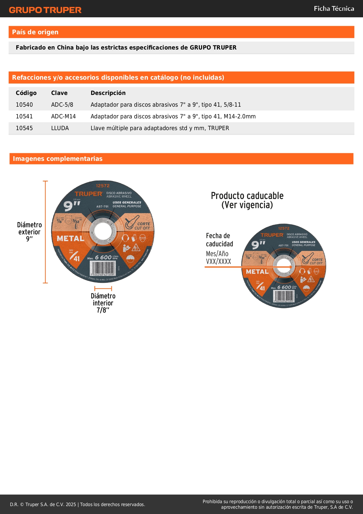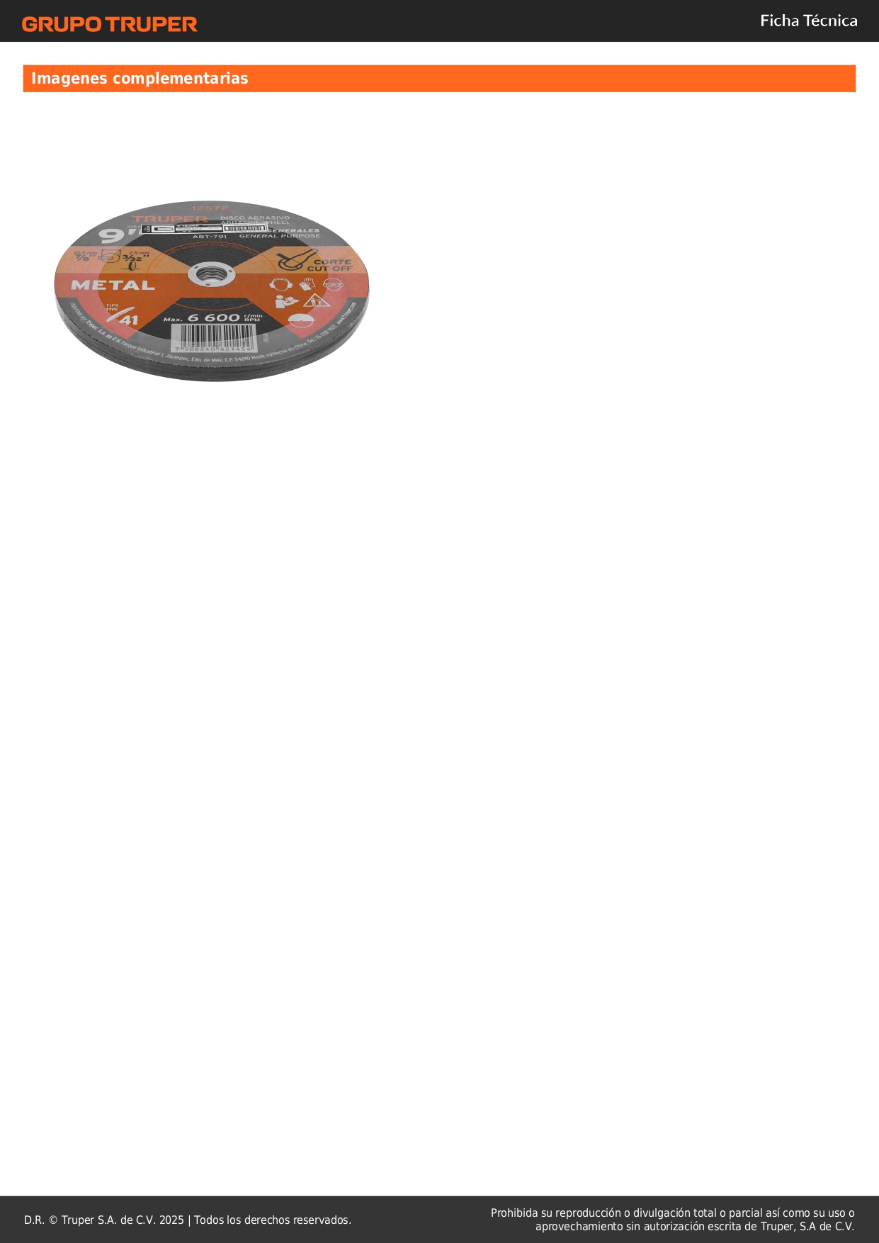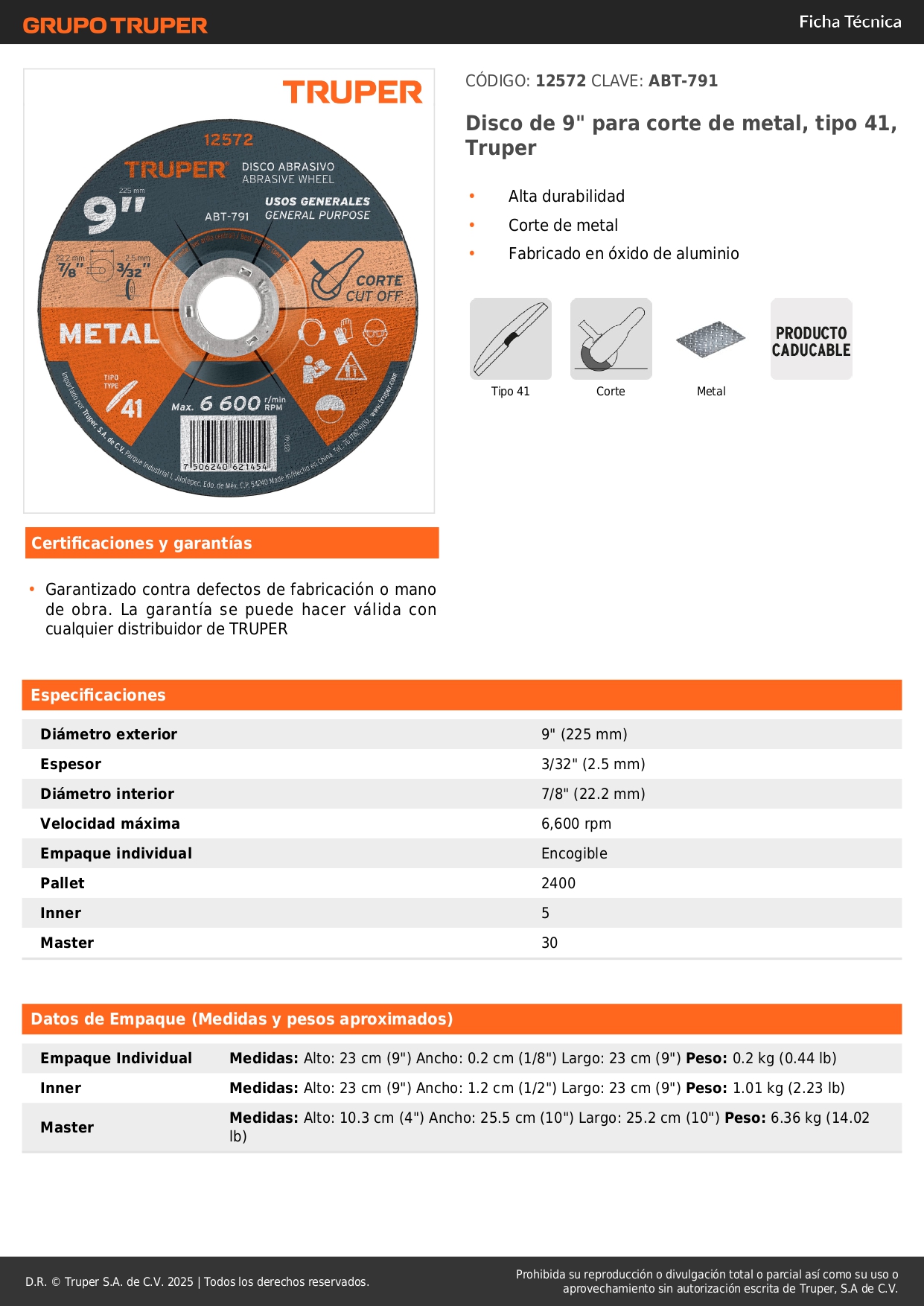 Disco de 9´´ para corte de metal, tipo 41, truper S/ 8.60 Agregar al carro Avísame cuando llegue -Alta durabilidad-Corte de metal-Fabricado en óxido de aluminio