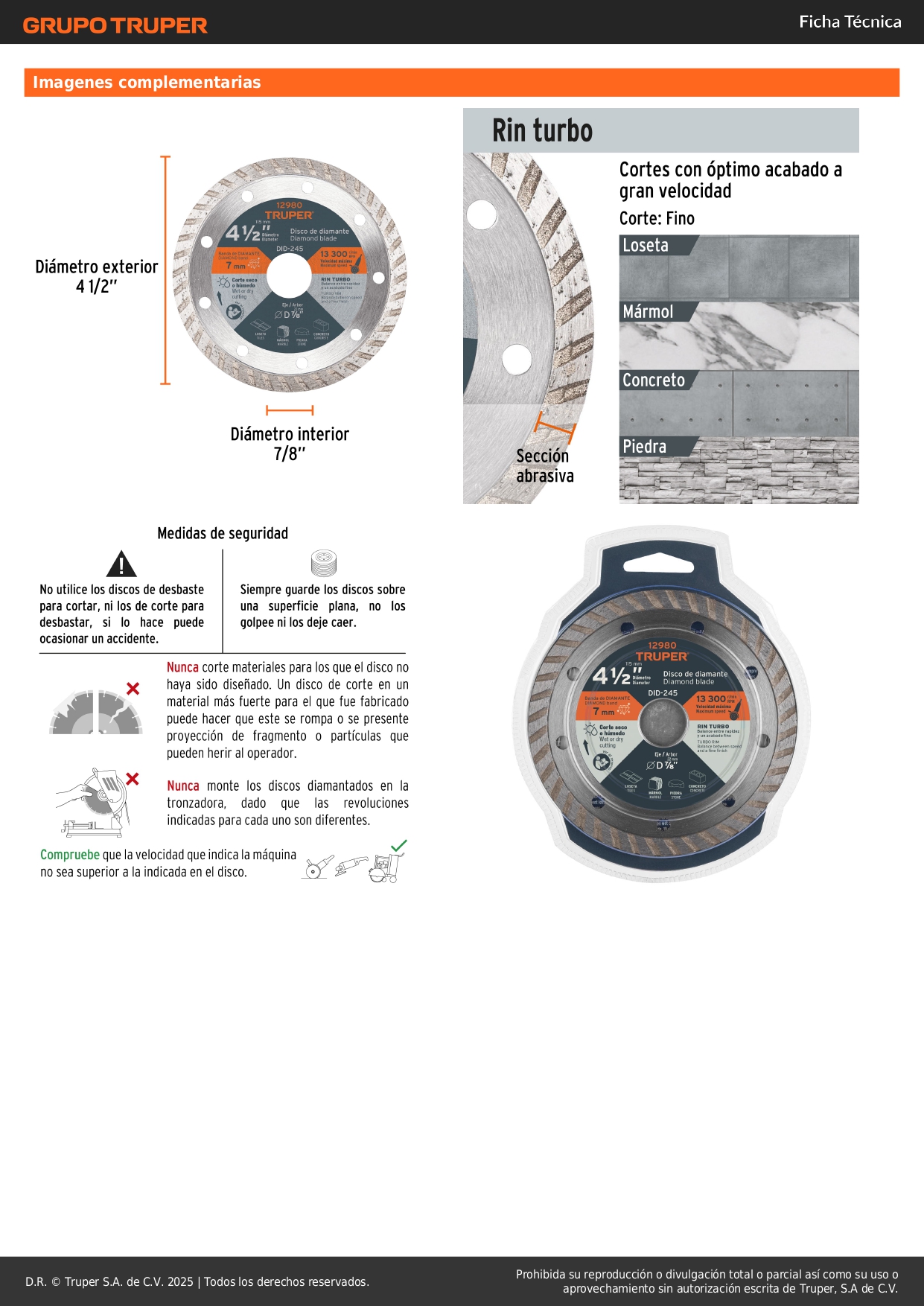 -Para corte rápido y fino en loseta, piedra, mármol y concreto