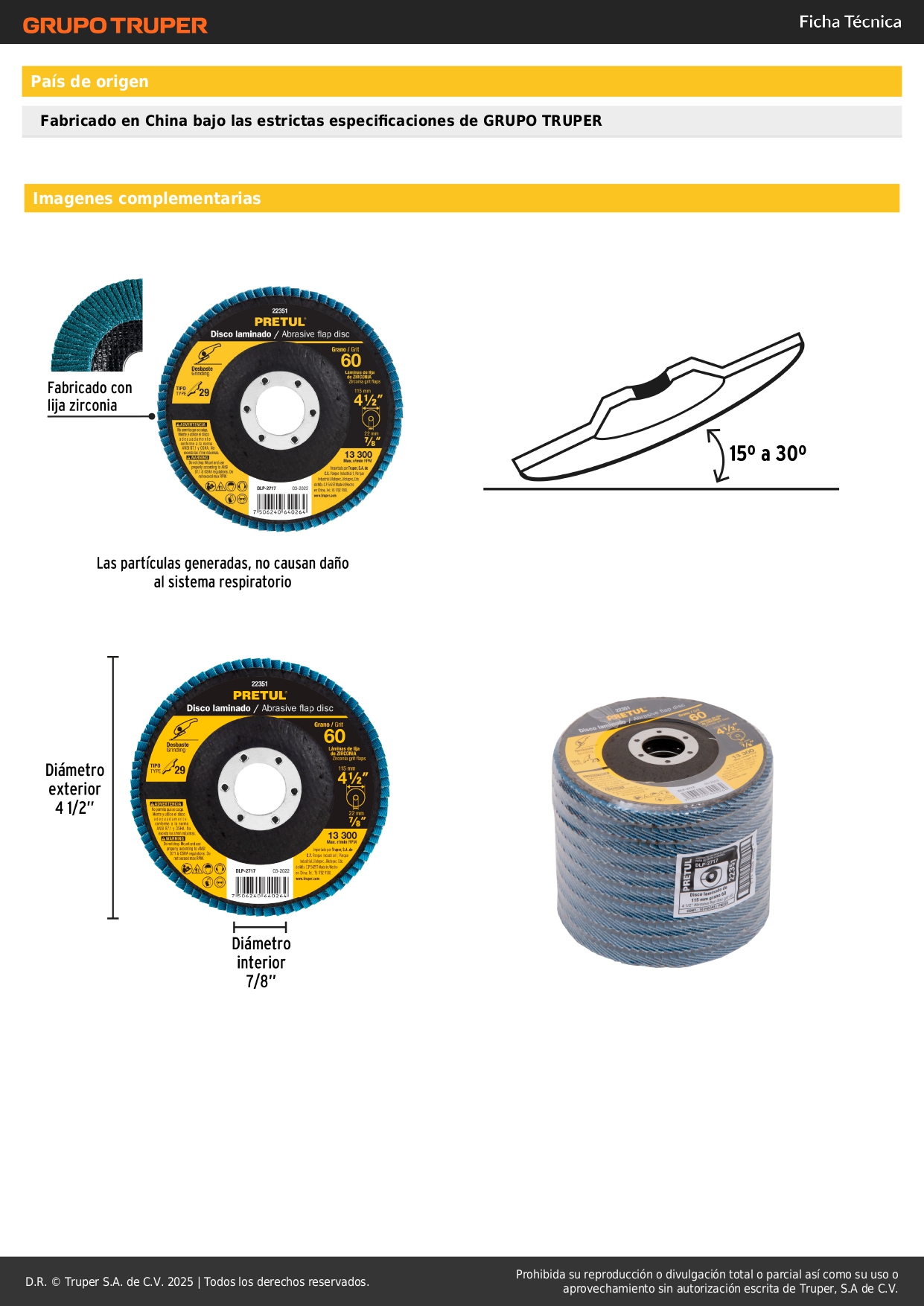 -Fabricado con lija de zirconia, con respaldo fibra de vidrio para mayor flexibilidad