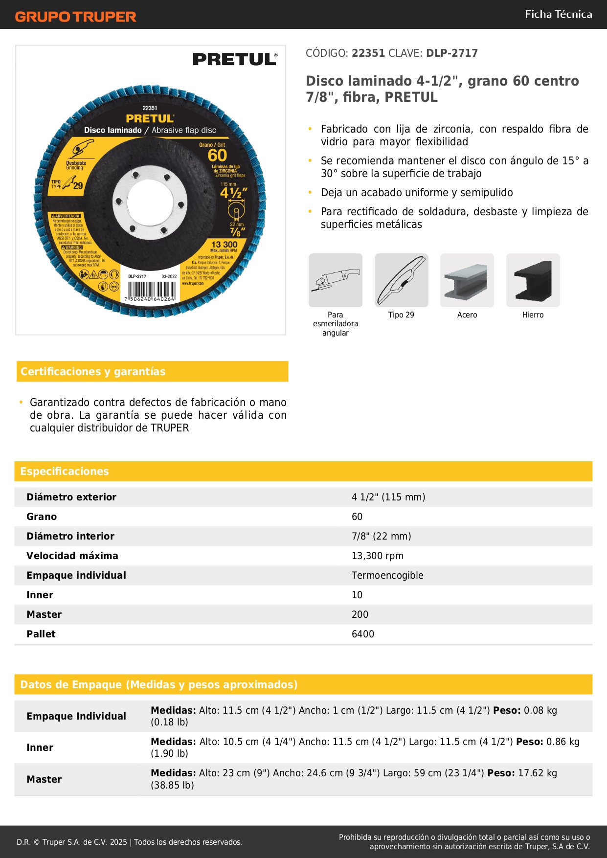 -Para rectificado de soldadura, desbaste y limpieza de superficies metálicas