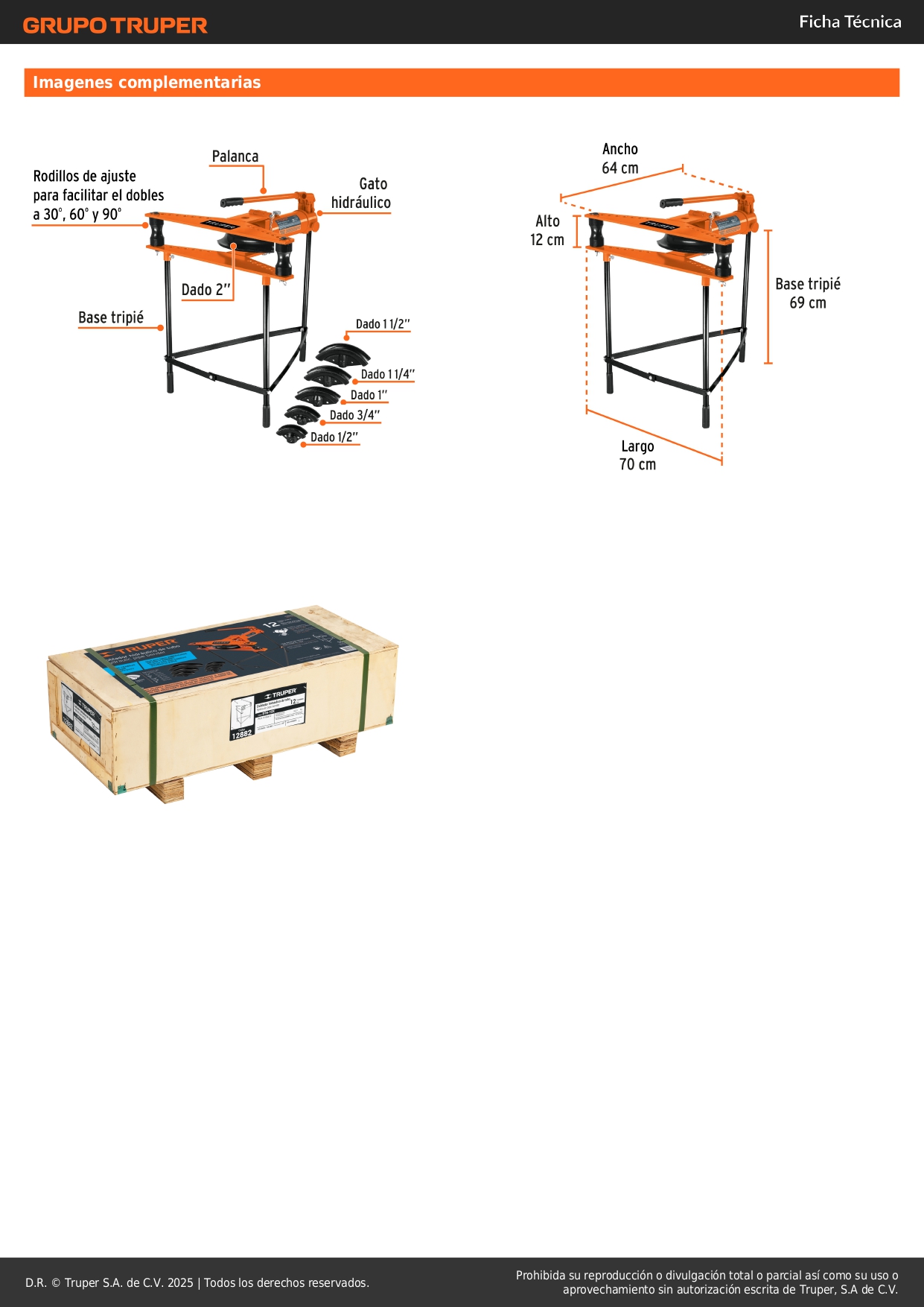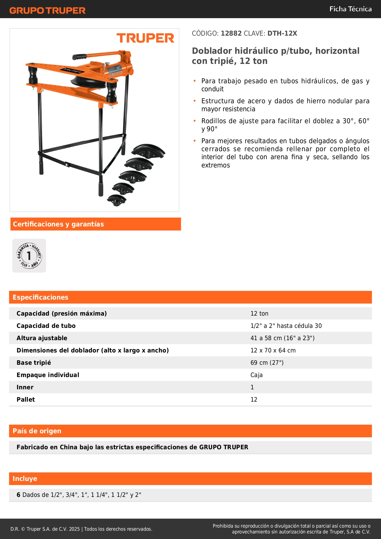 Doblador de tubo hidraulico 12 toneladas horizontal truper