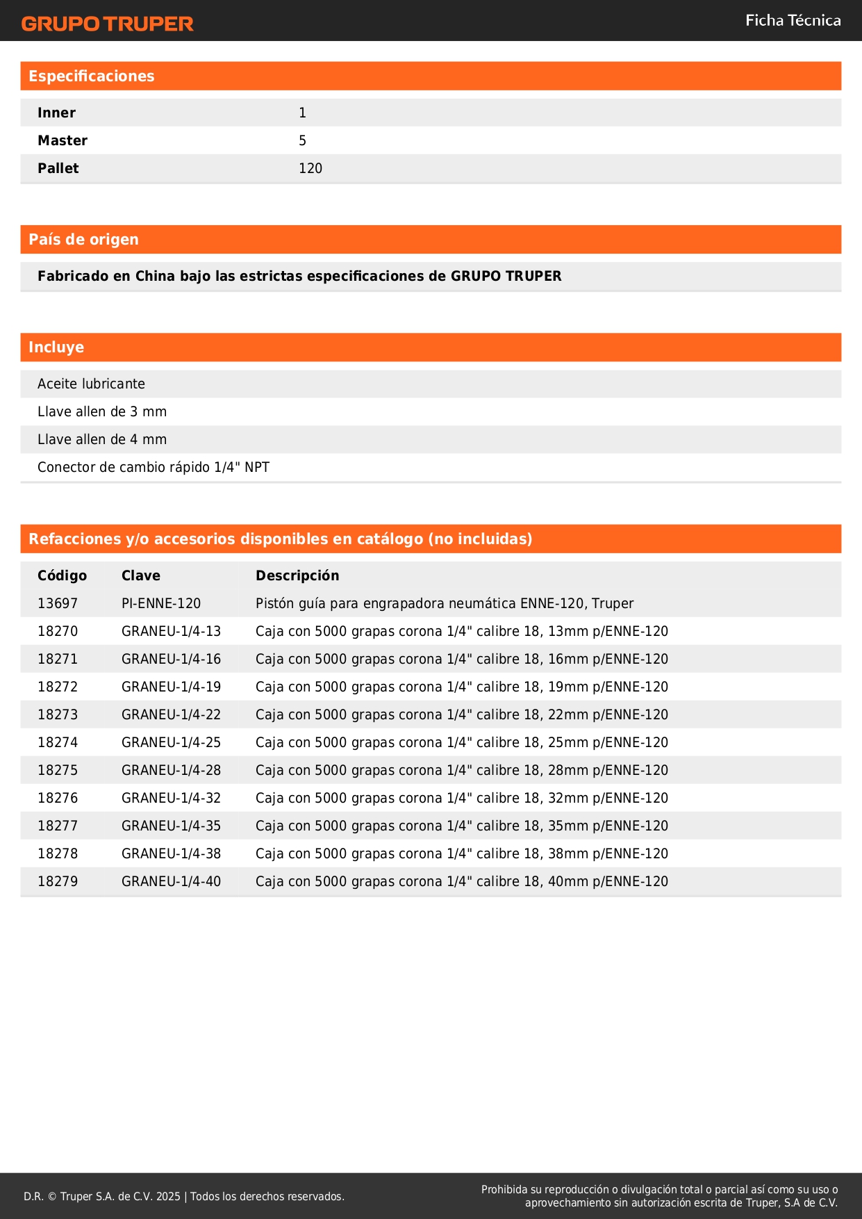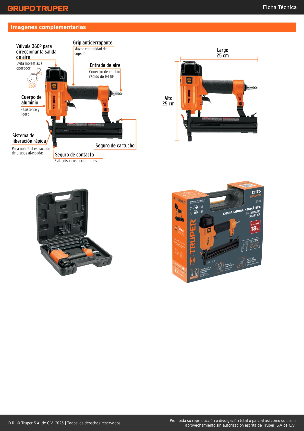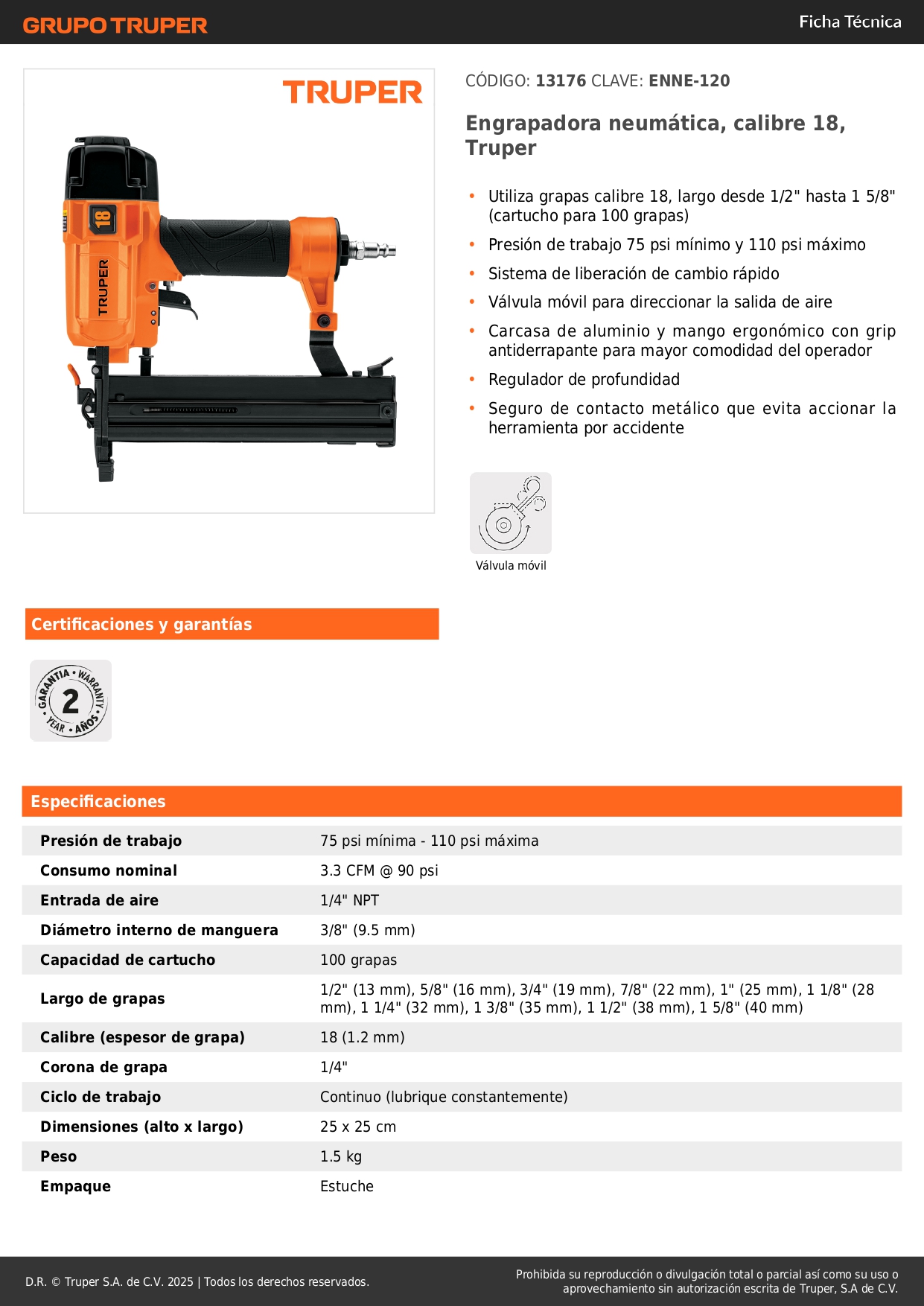 -Utiliza grapas calibre 18, largo desde 1/2" hasta 1 5/8" (cartucho para 100 grapas)