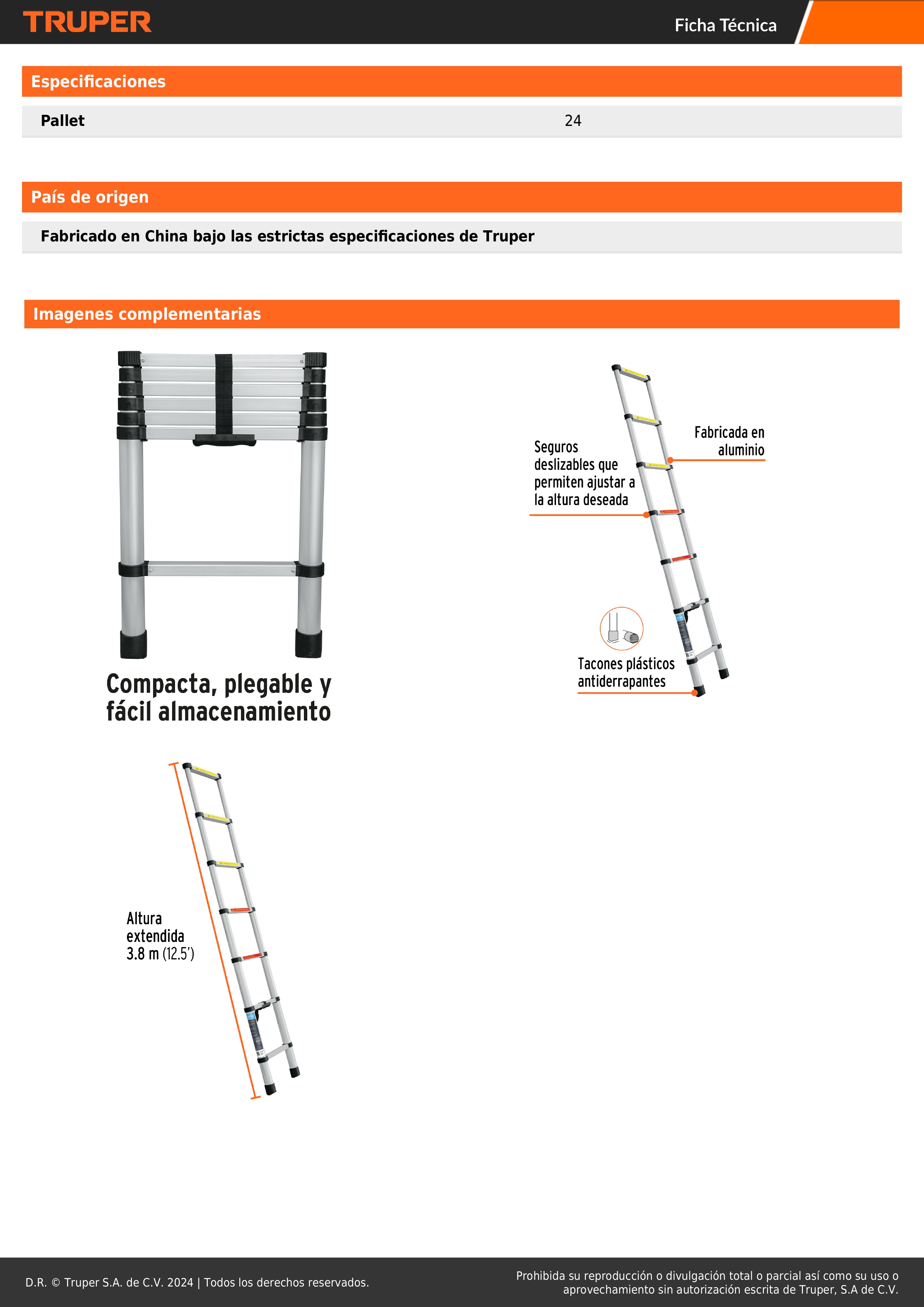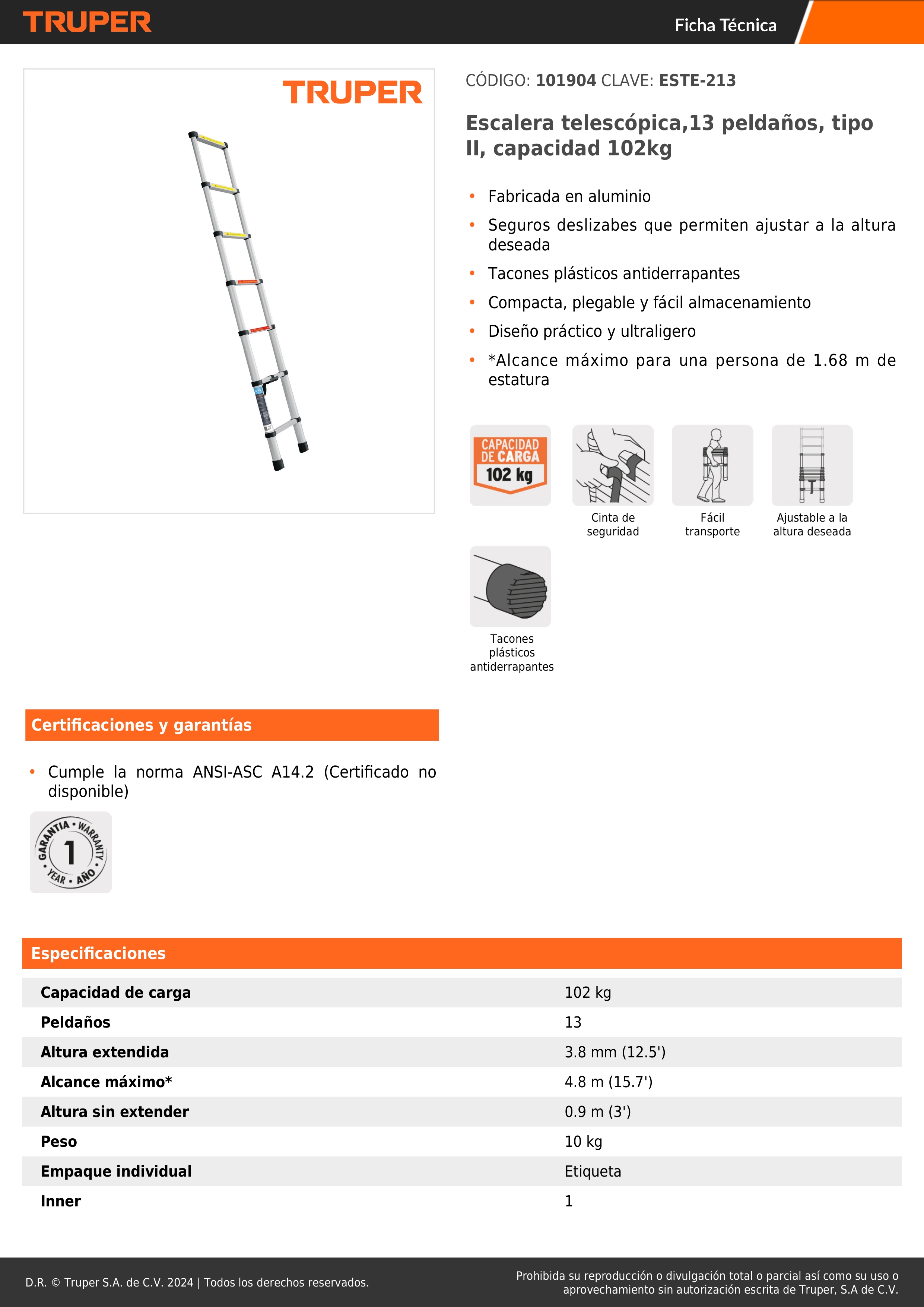 Escalera telescopica 13 peldaños plegable 102kg truper