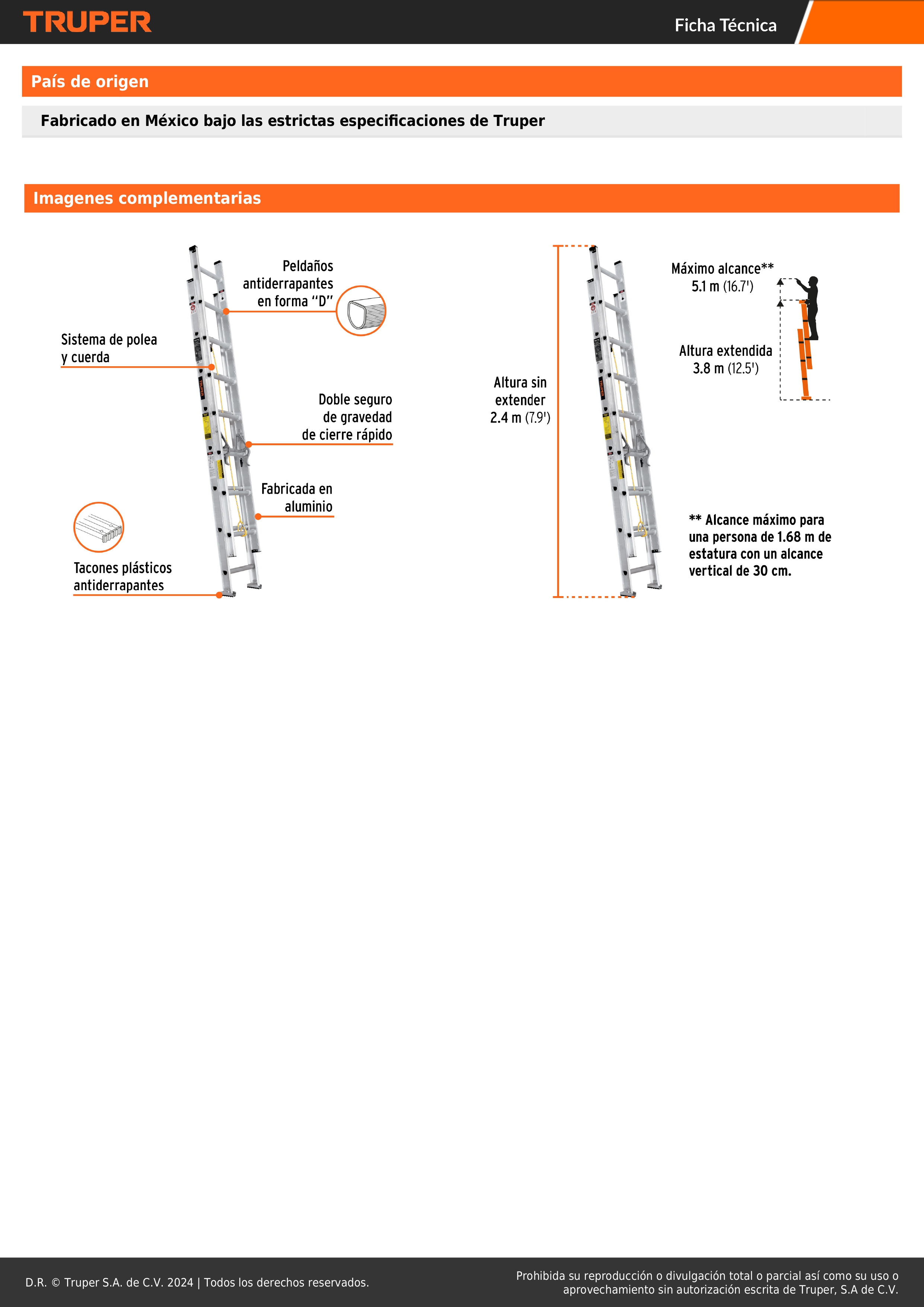 Escalera telescópica 16 peldaños soporta 150 kg truper