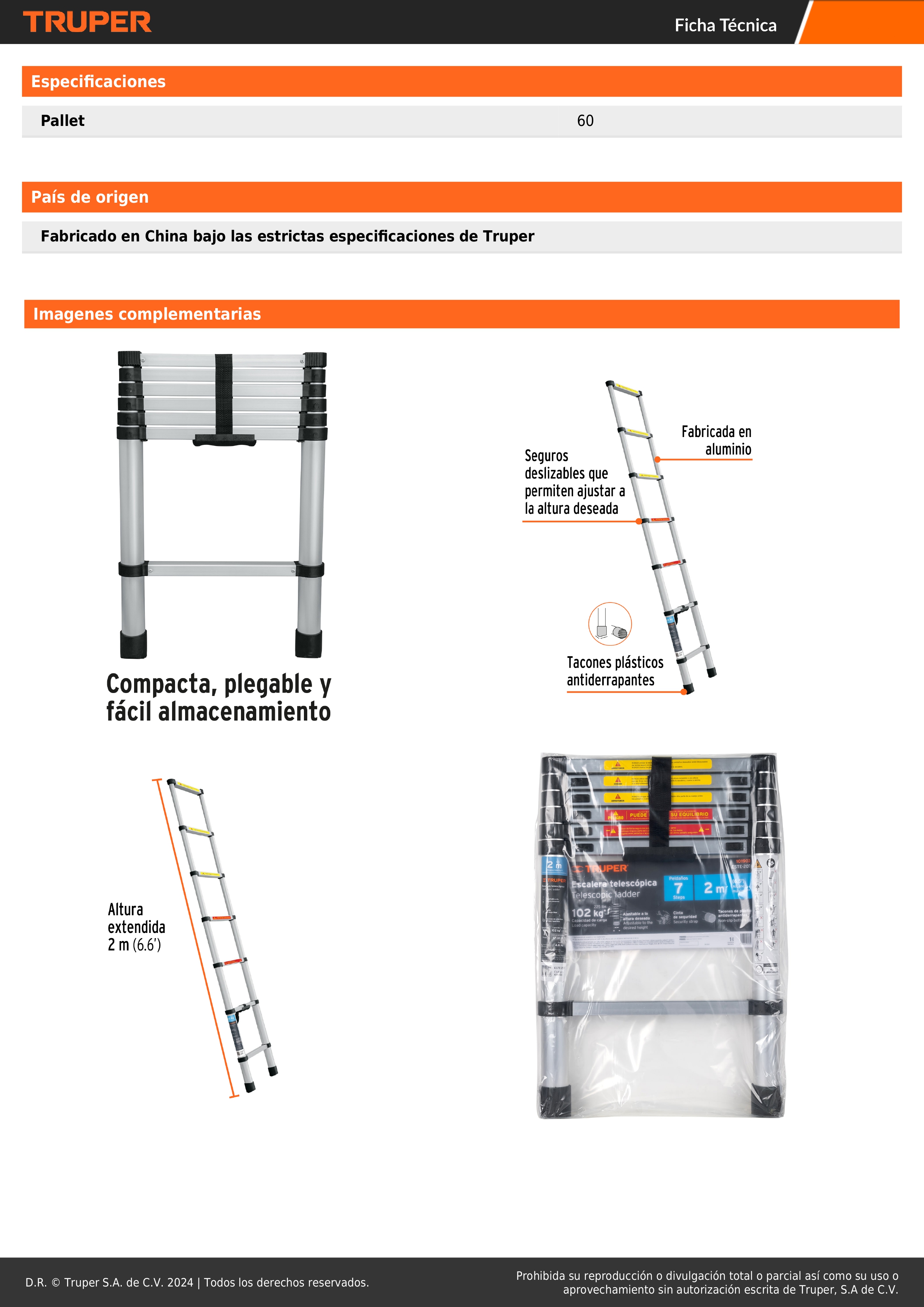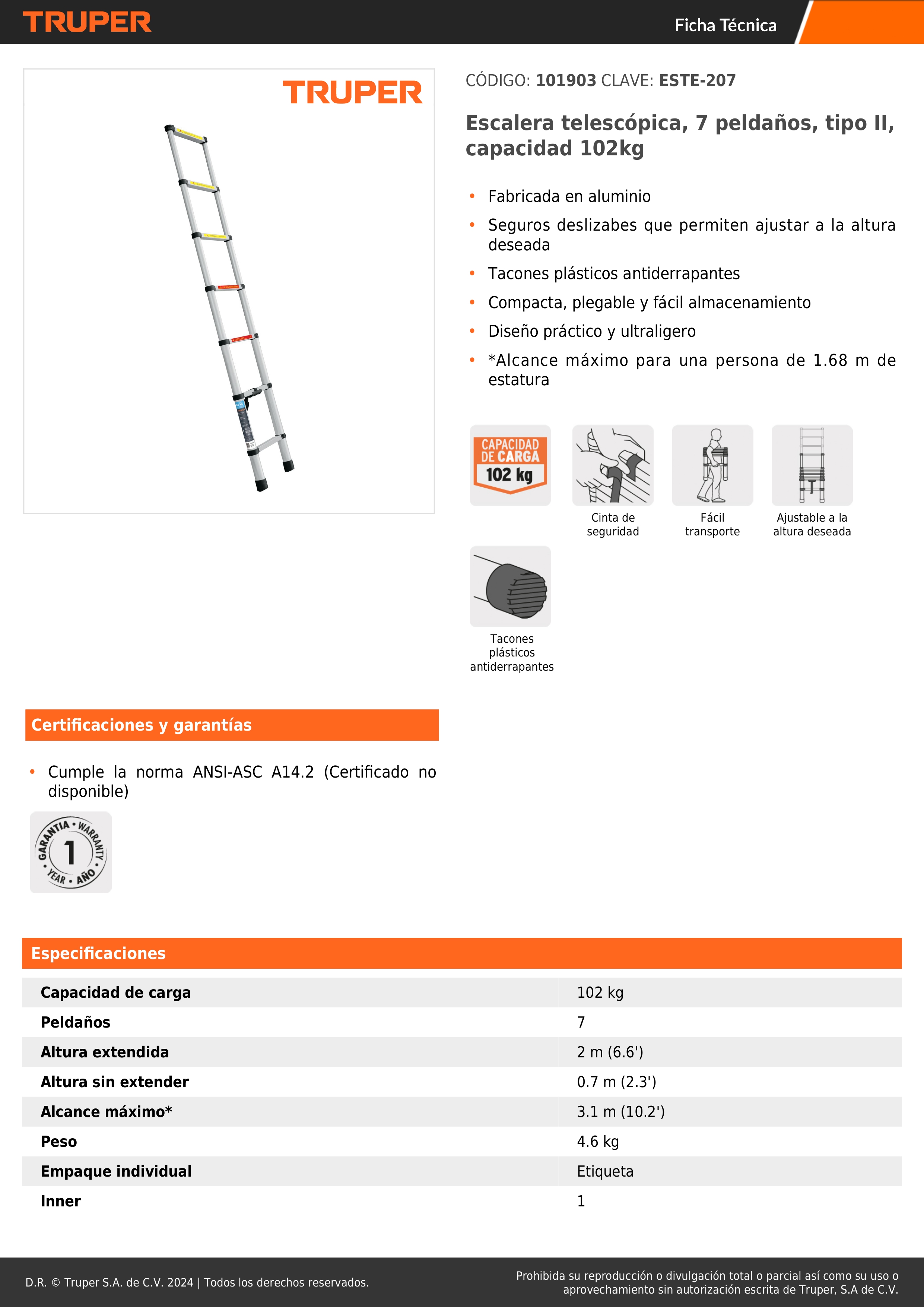 Escalera telescopica 7 peldaños plegable 102kg truper