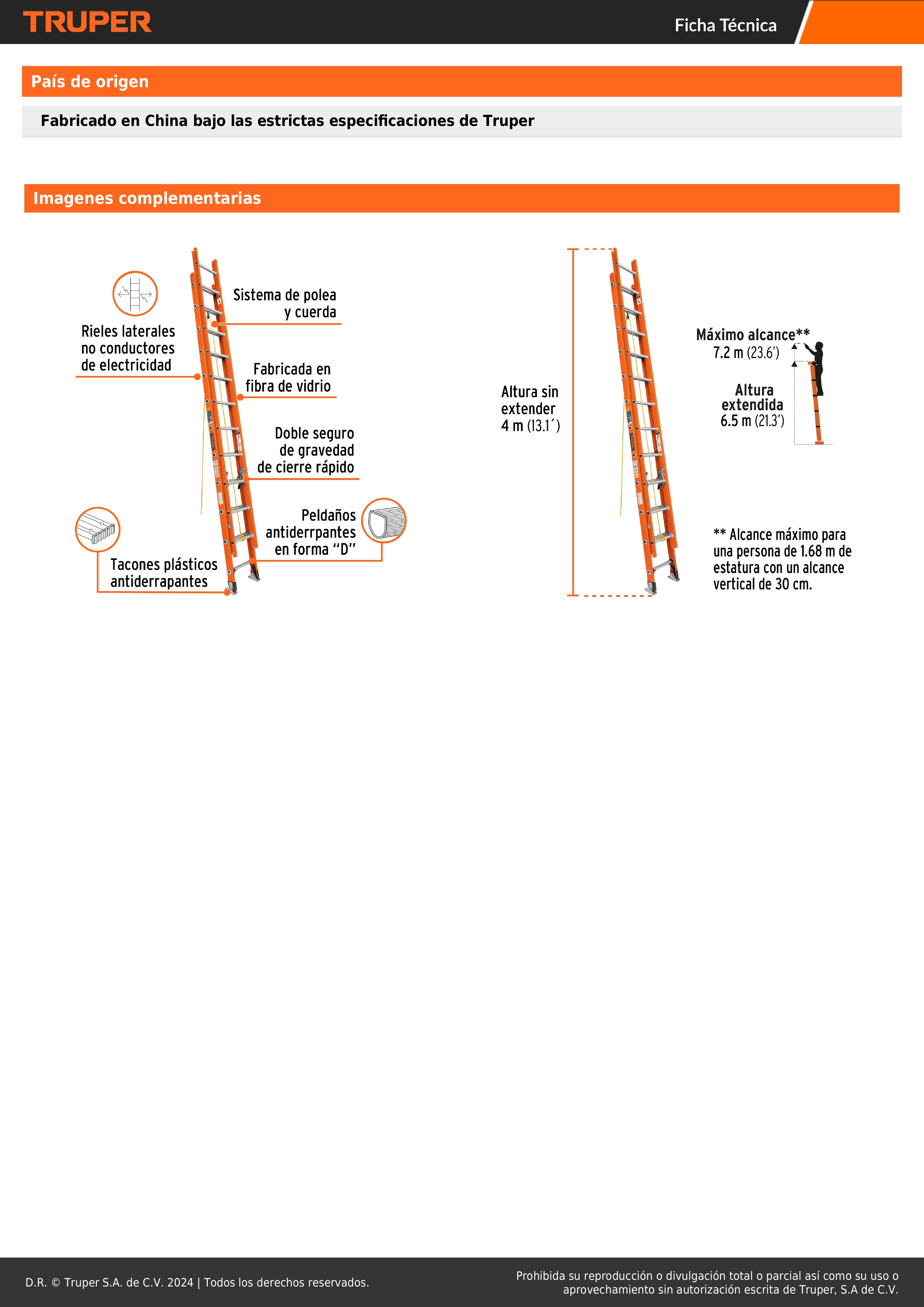 Altura extendida 6.5 m (21.3')