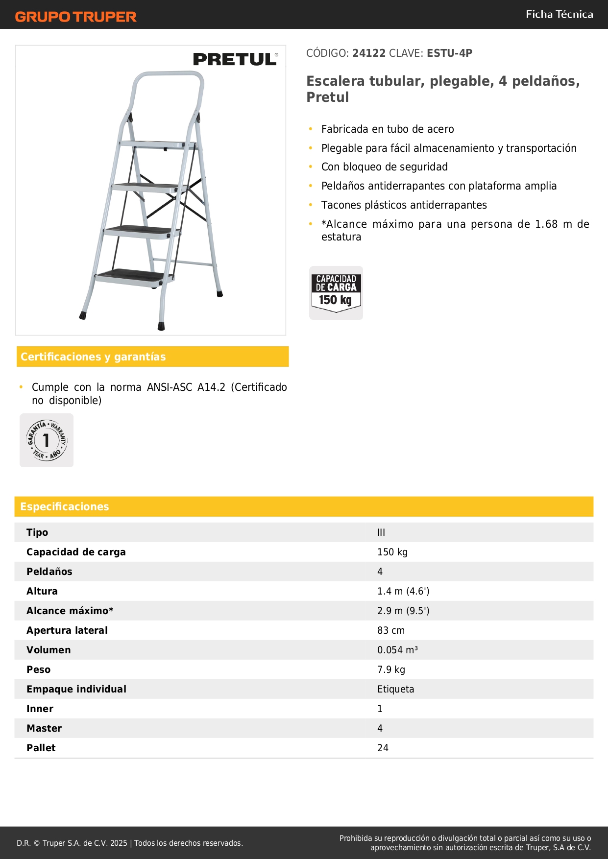 Escalera tubular, plegable, 4 peldaños, Pretul