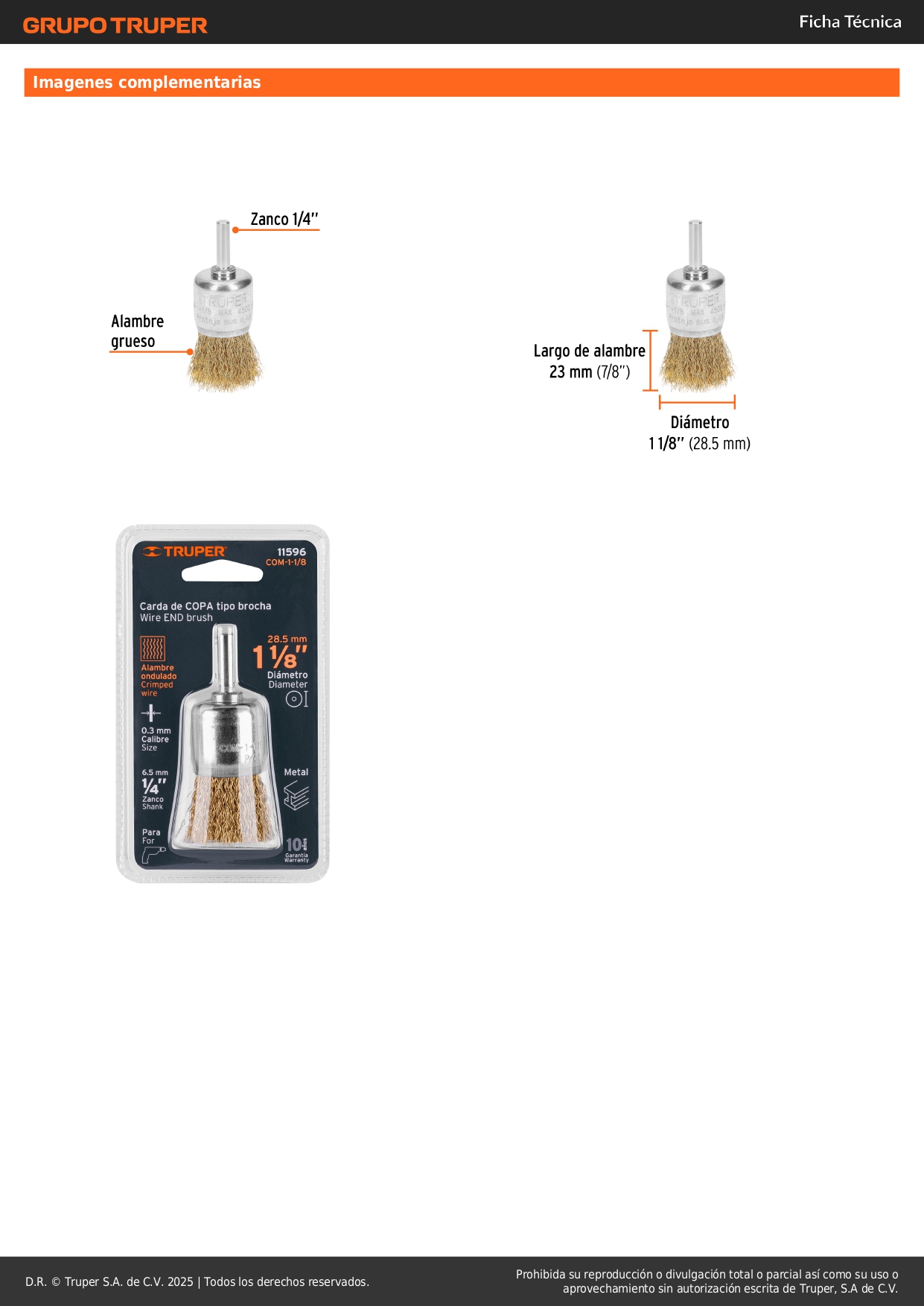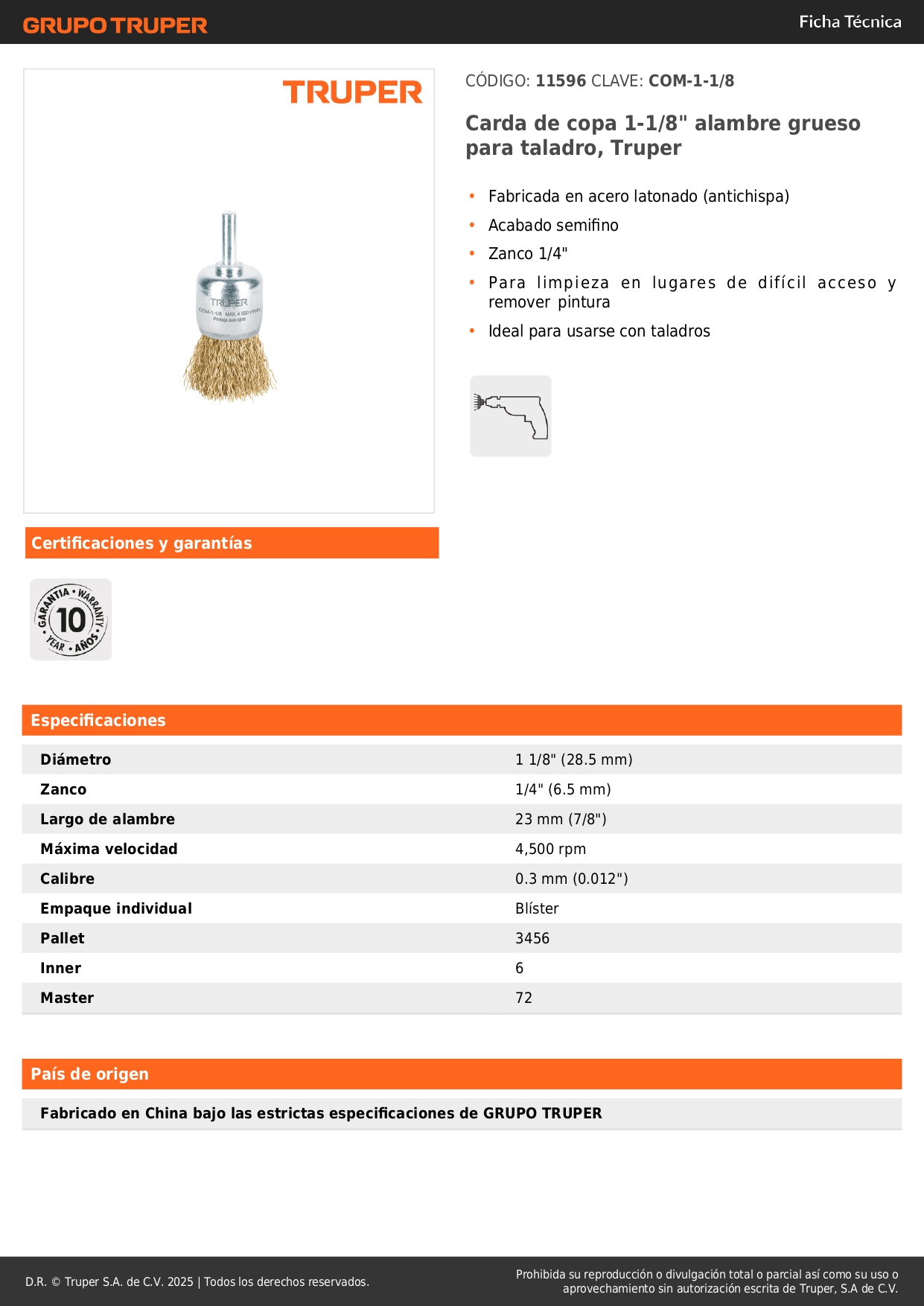 Escobilla tipo copa 1-1/8´´ alambre grueso para taladro, truper S/ 7.00 Agregar al carro Avísame cuando llegue -Fabricada en acero latonado (antichispa)-Acabado semifino-Zanco 1/4"-Para limpieza en lugares de difícil acceso y remover pintura-Ideal para usarse con taladros