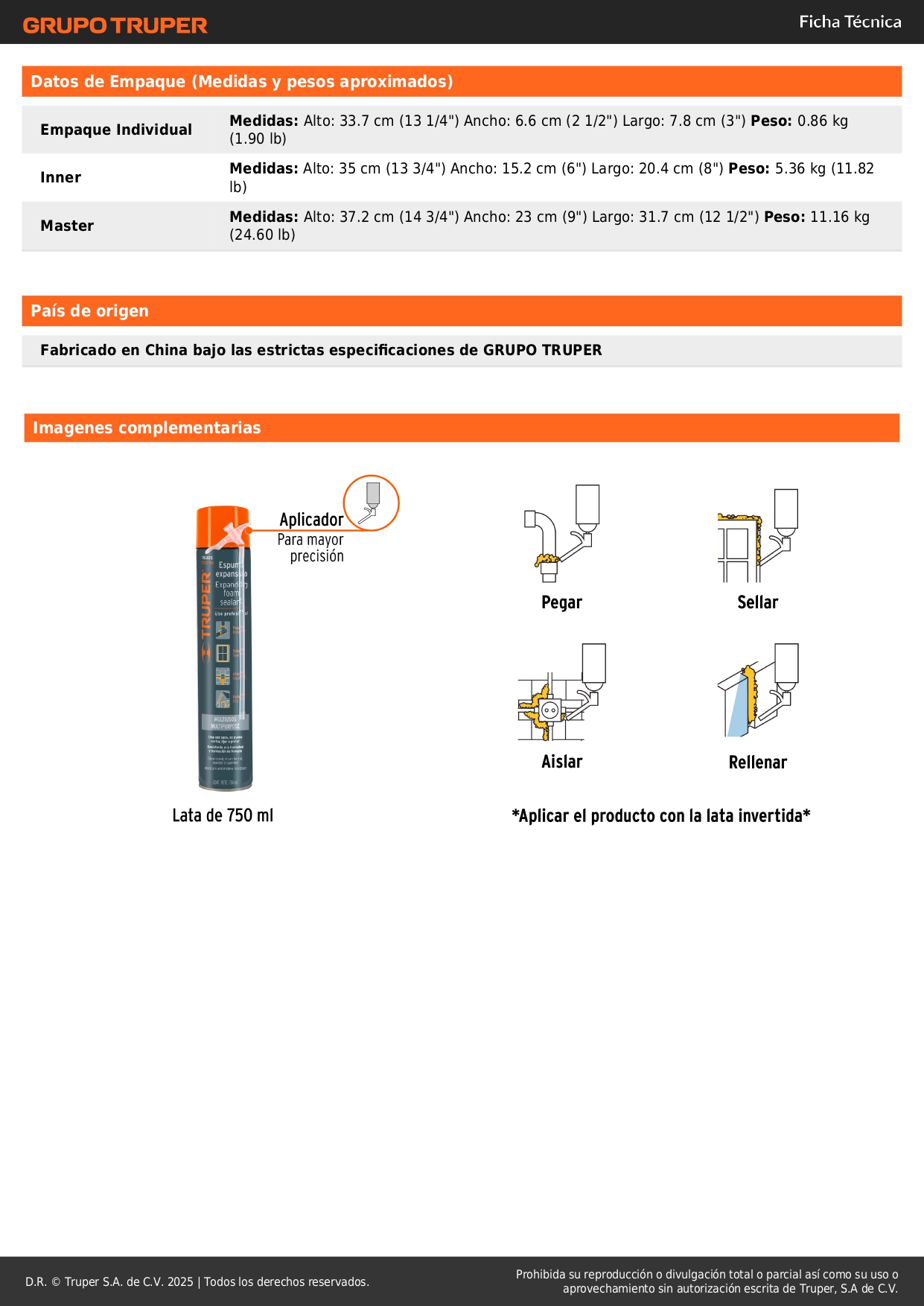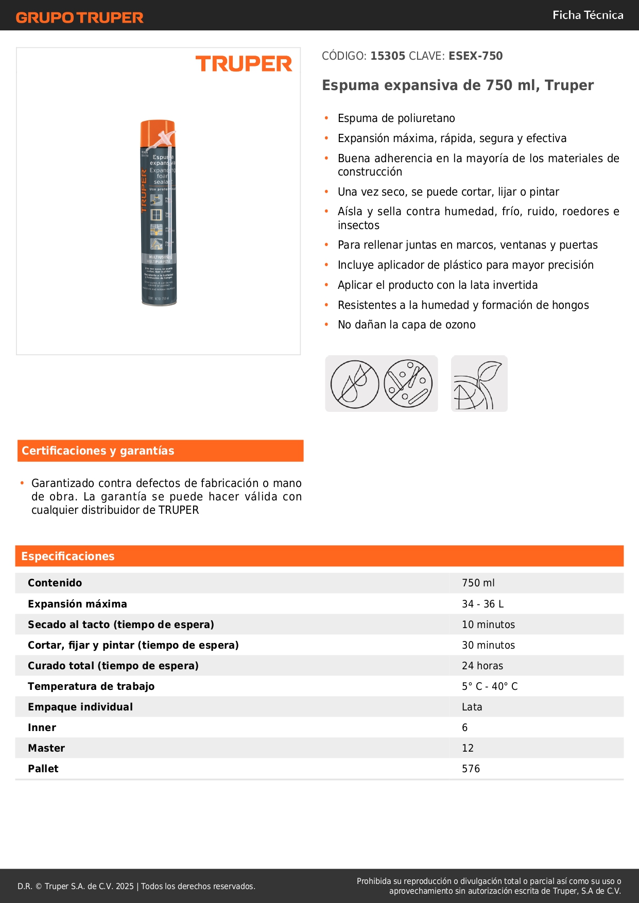 Espuma expansiva de 750 ml, truper