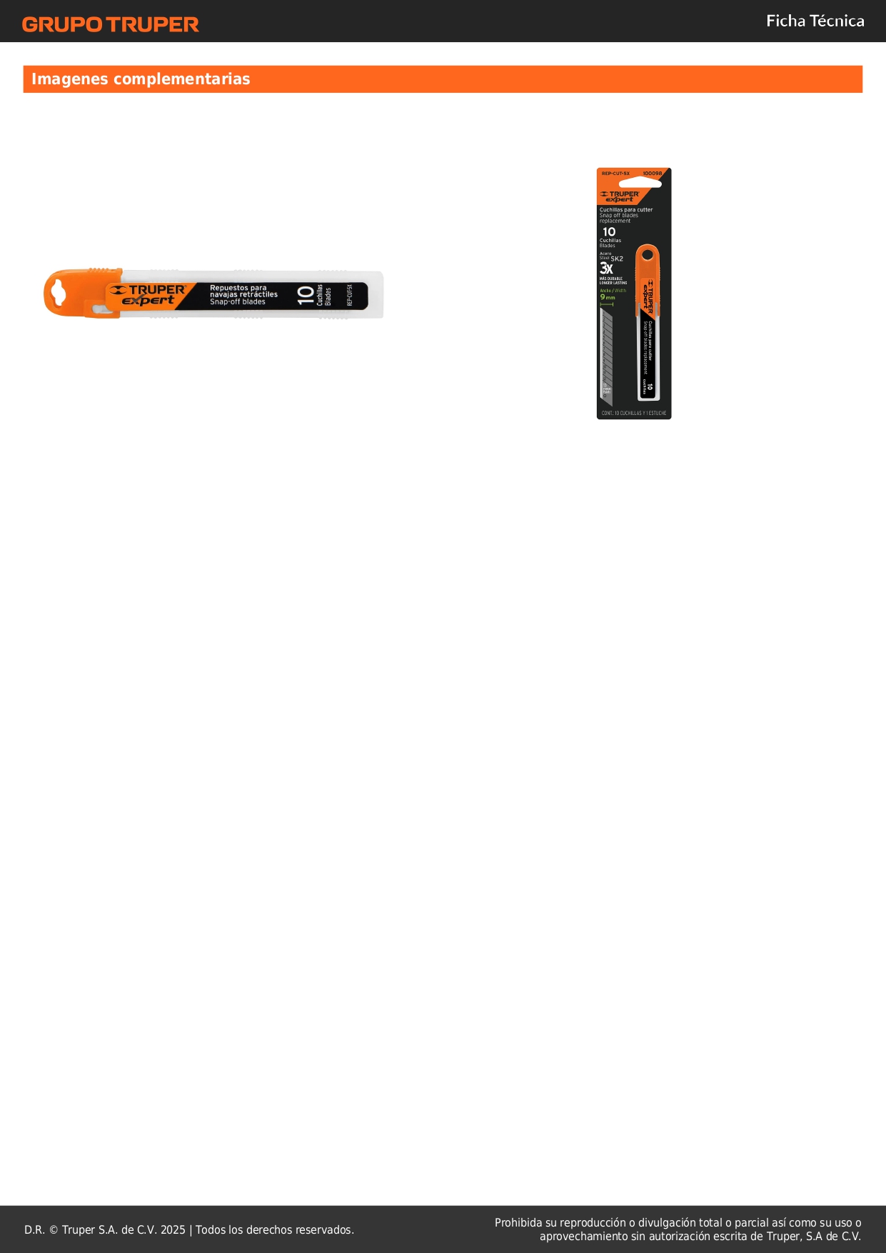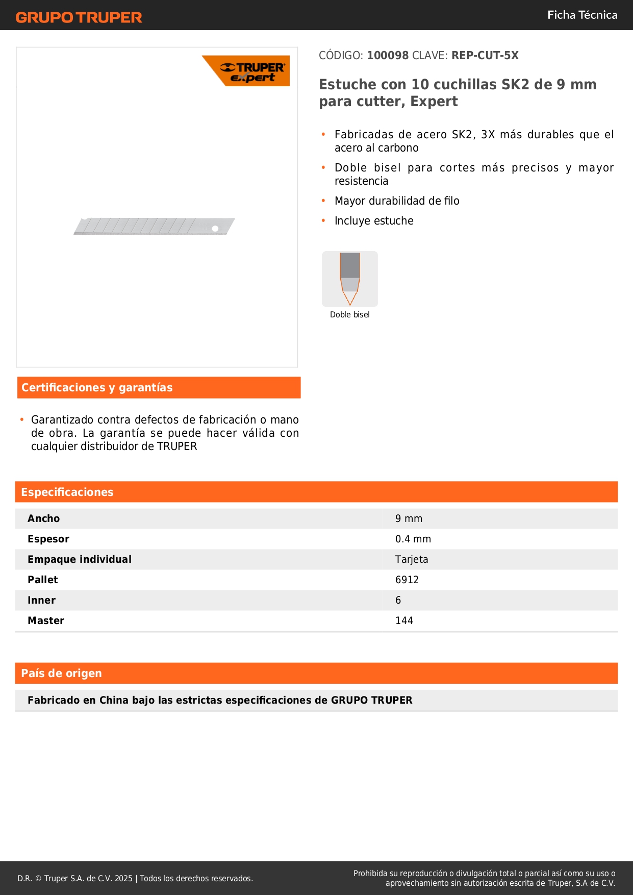 Estuche con 10 navajas sk2 de 9 mm para cuchilla, expert truper S/ 4.10 Agregar al carro Avísame cuando llegue -Fabricadas de acero SK2, 3X más durables que el acero al carbono-Doble bisel para cortes más precisos y mayor resistencia-Mayor durabilidad de filo-Incluye estuche