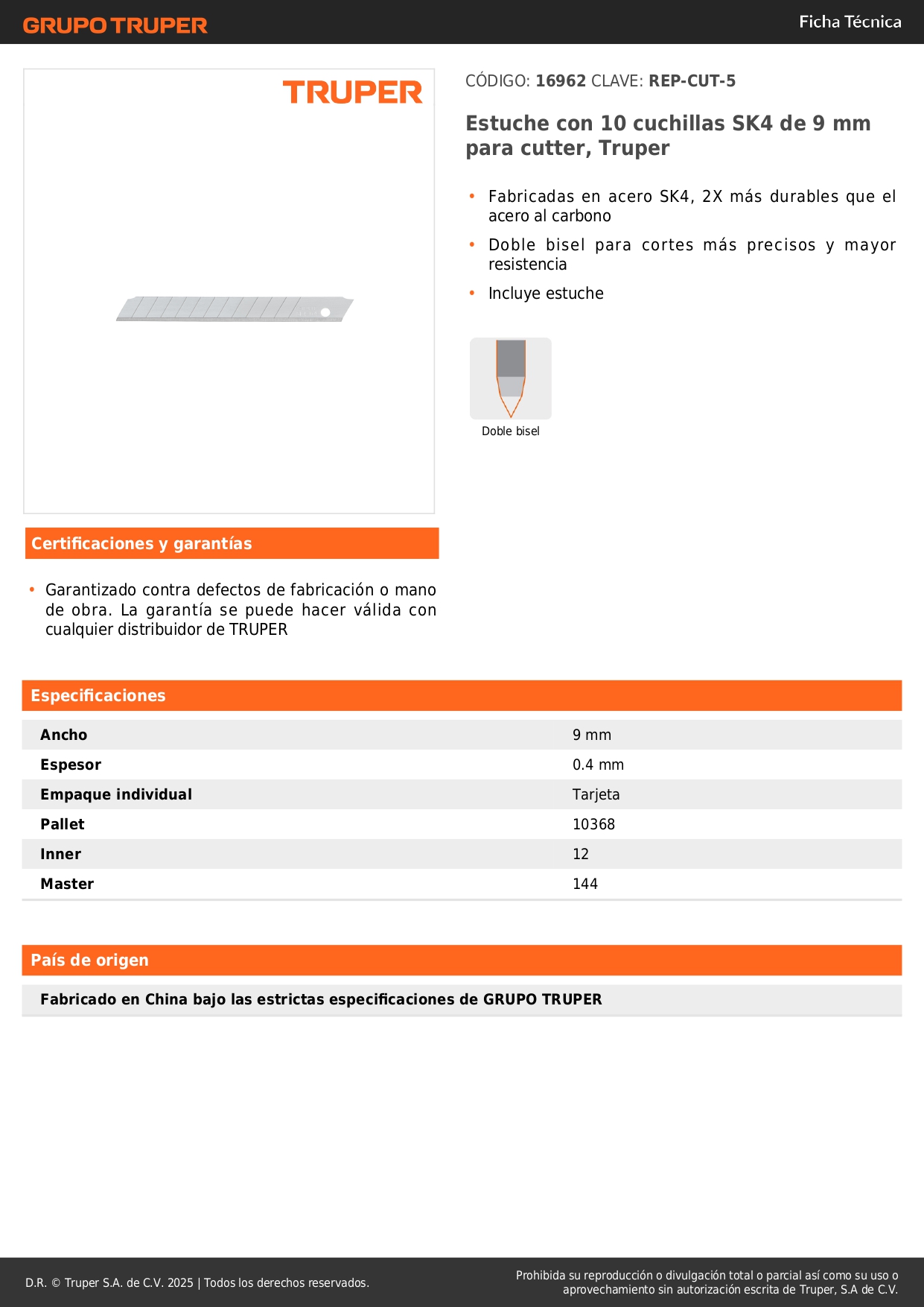 Estuche con 10 navajas sk4 de 9 mm para cuchilla. truper S/ 3.50 Agregar al carro Avísame cuando llegue -Fabricadas en acero SK4, 2X más durables que el acero al carbono-Doble bisel para cortes más precisos y mayor resistencia-Incluye estuche