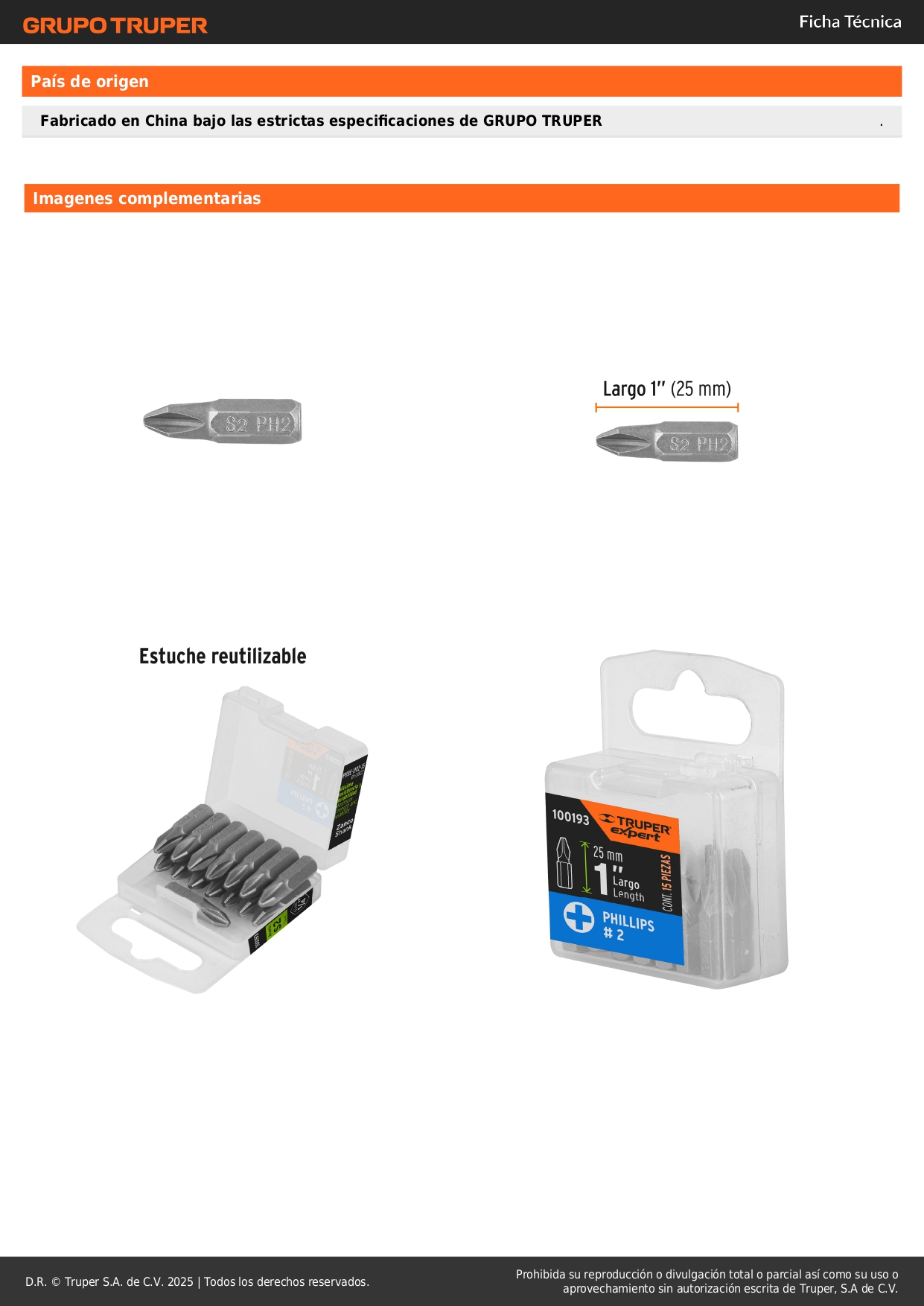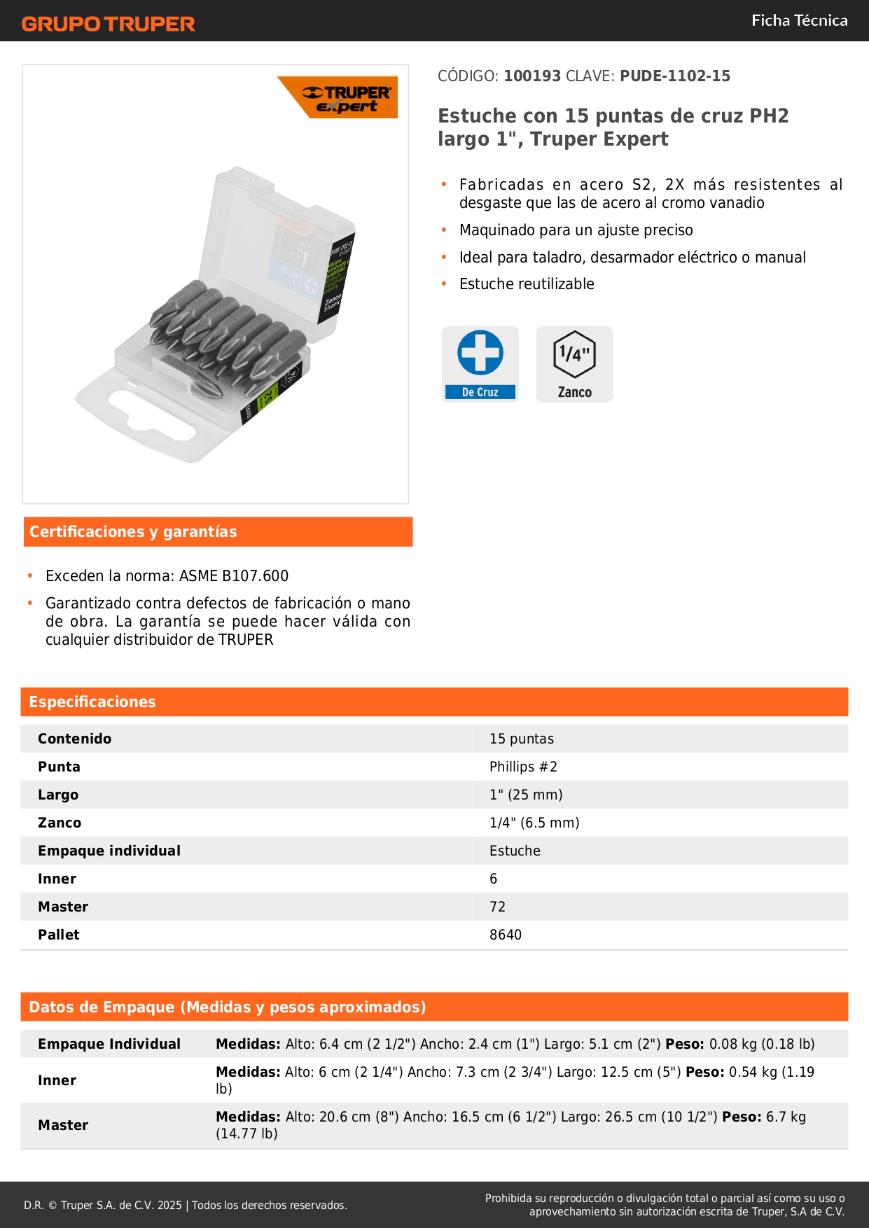 Estuche con 15 puntas de cruz ph2 largo 1´´, truper expert