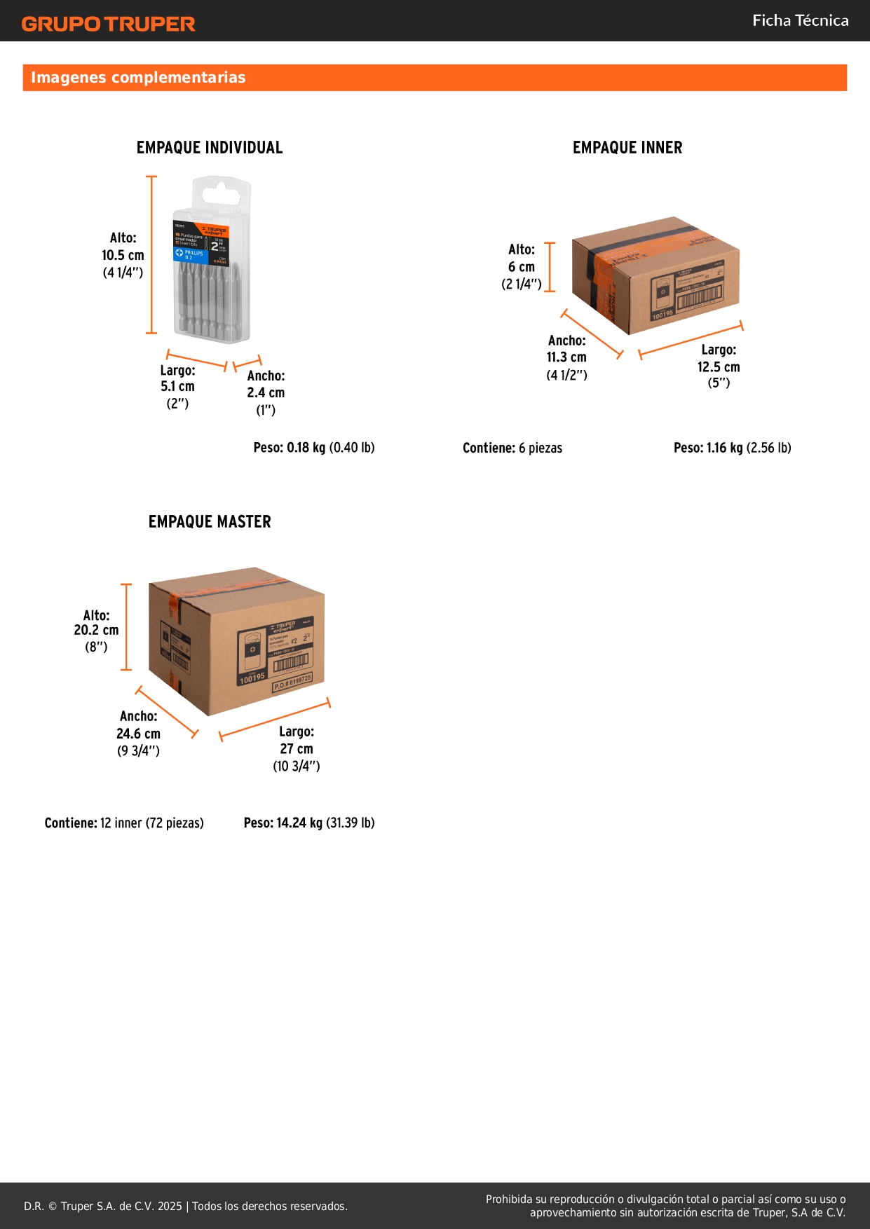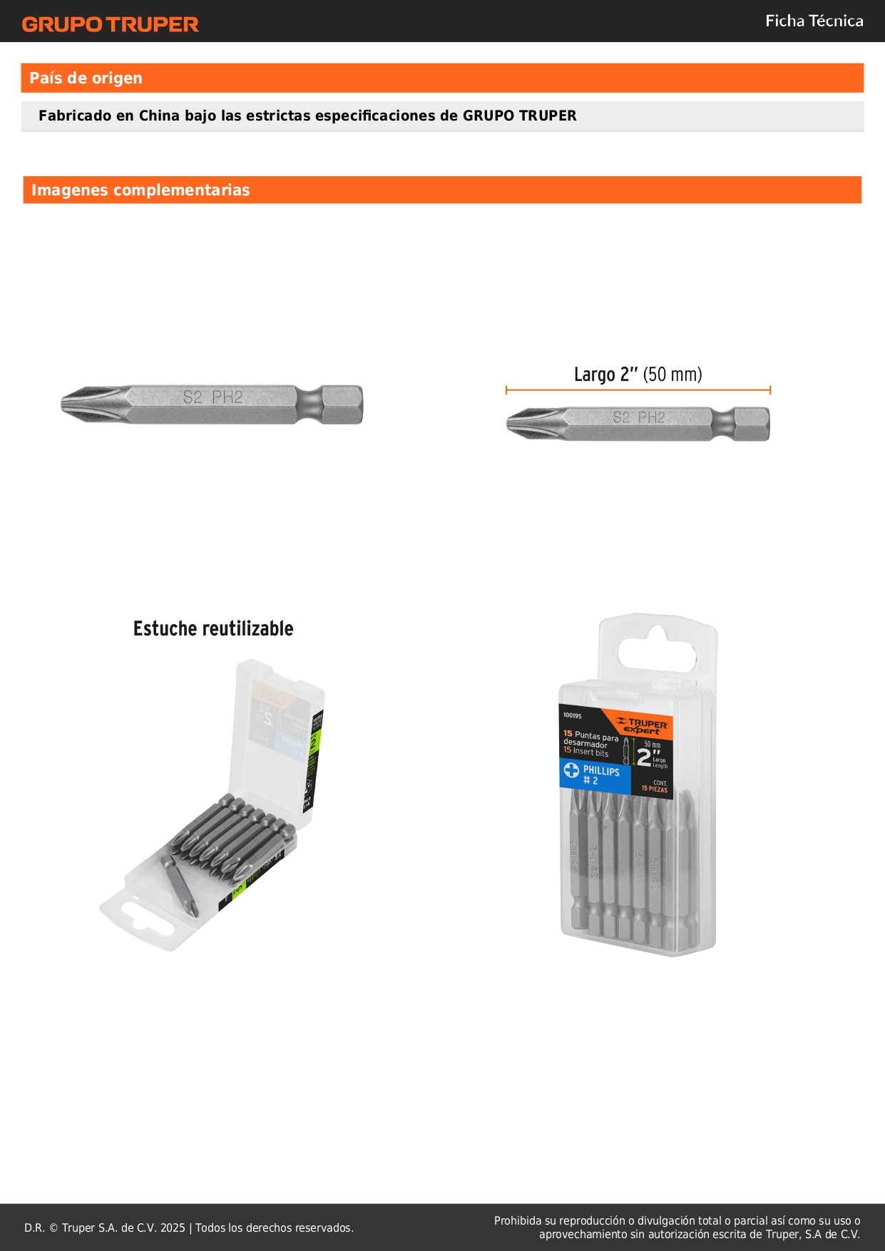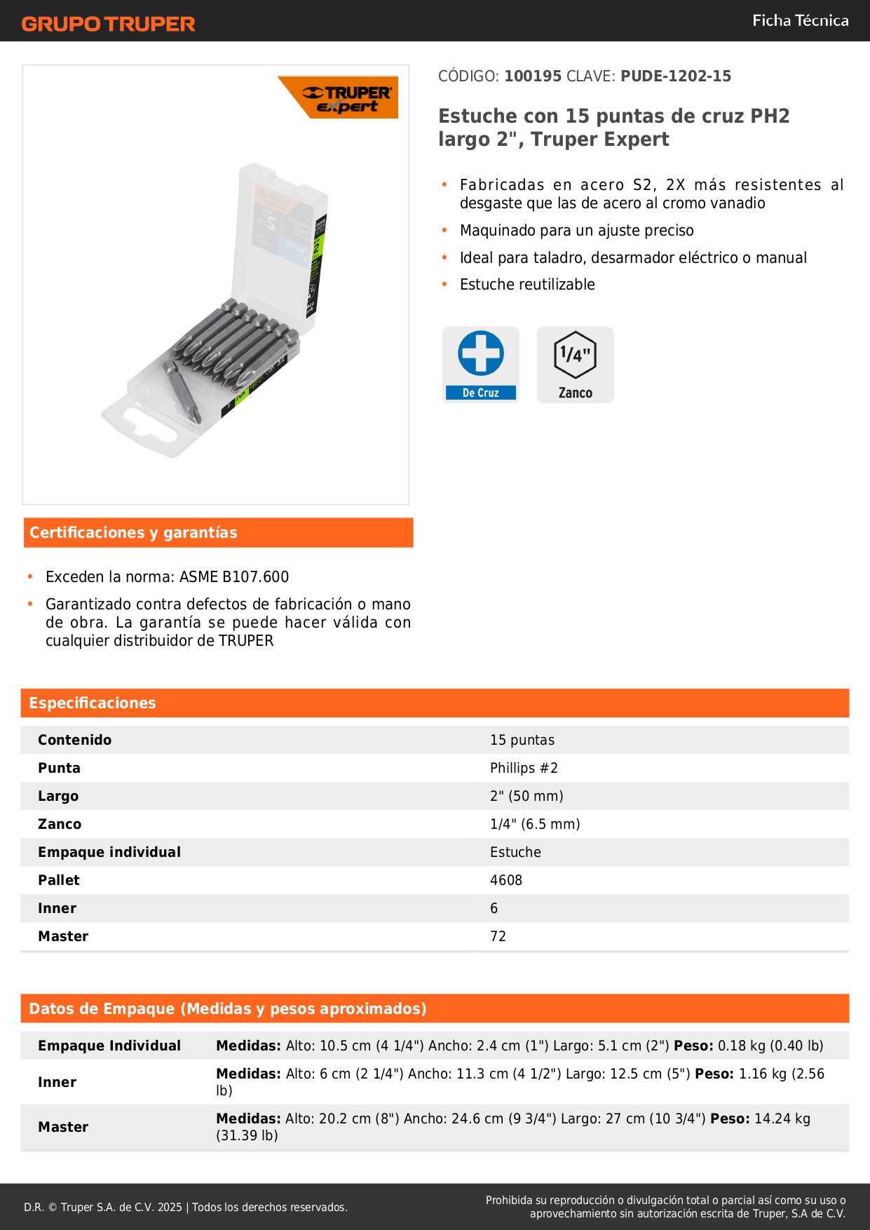 Estuche con 15 puntas de cruz ph2 largo 2´´, truper expert