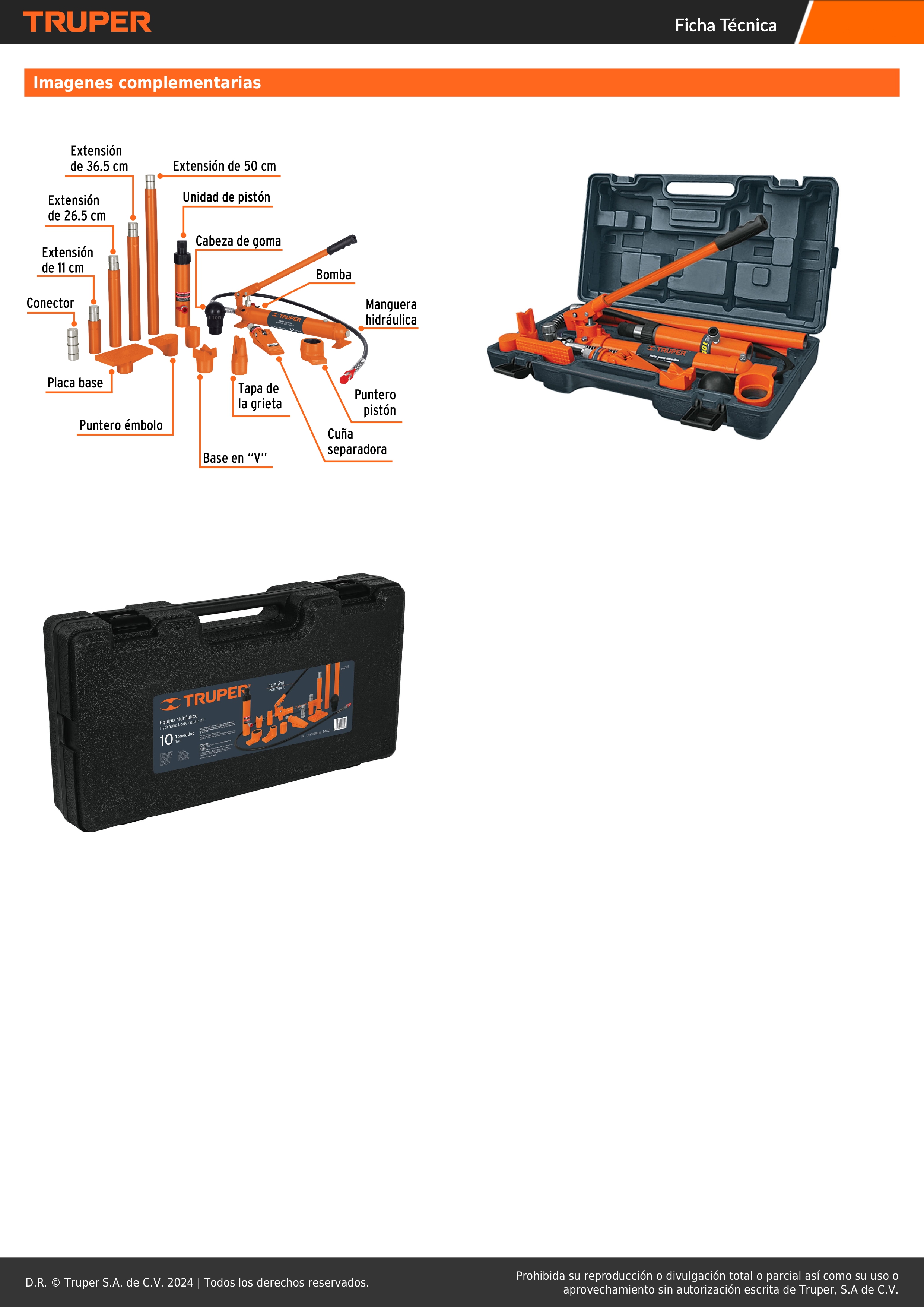 • Accesorios intercambiables para empujar, separar, posicionar piezas y acelerar el trabajo de reparación de vehículos