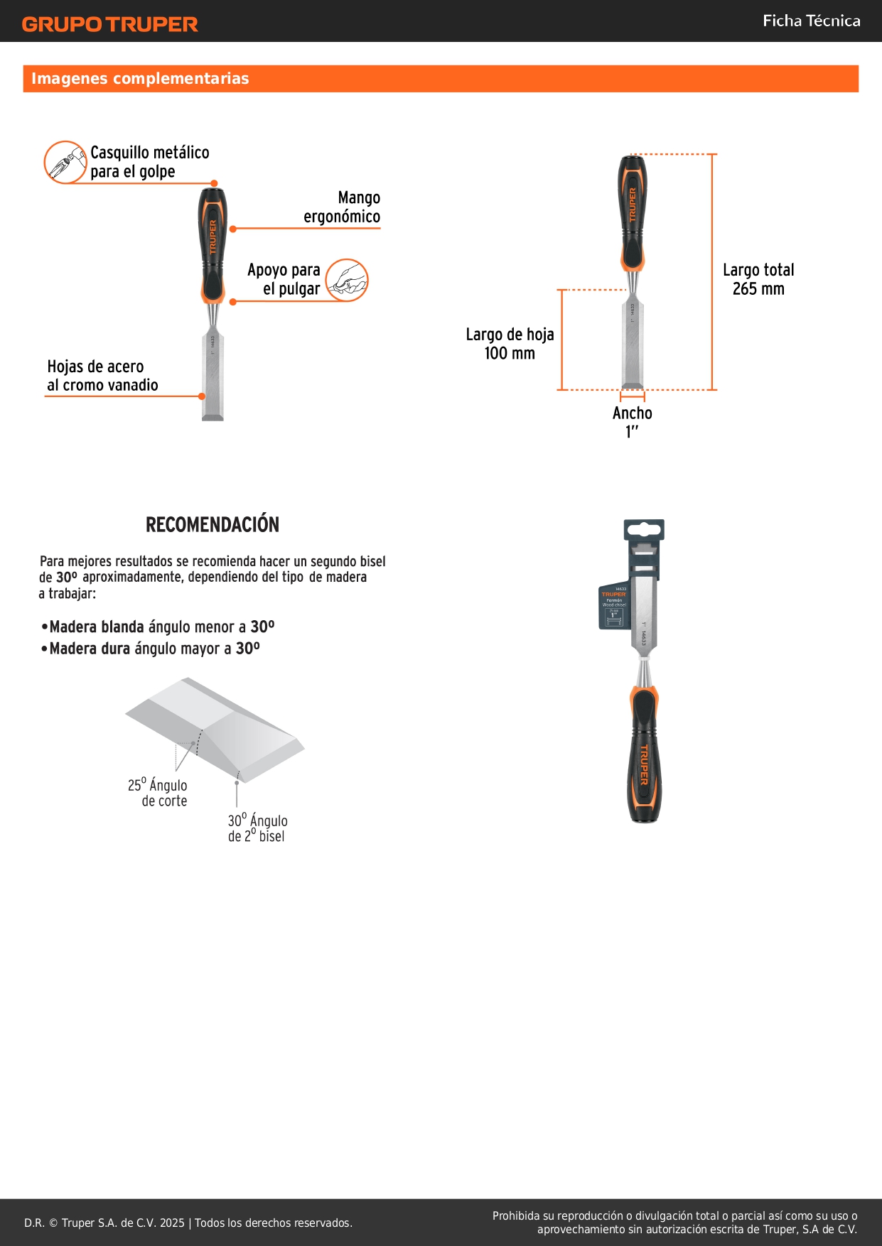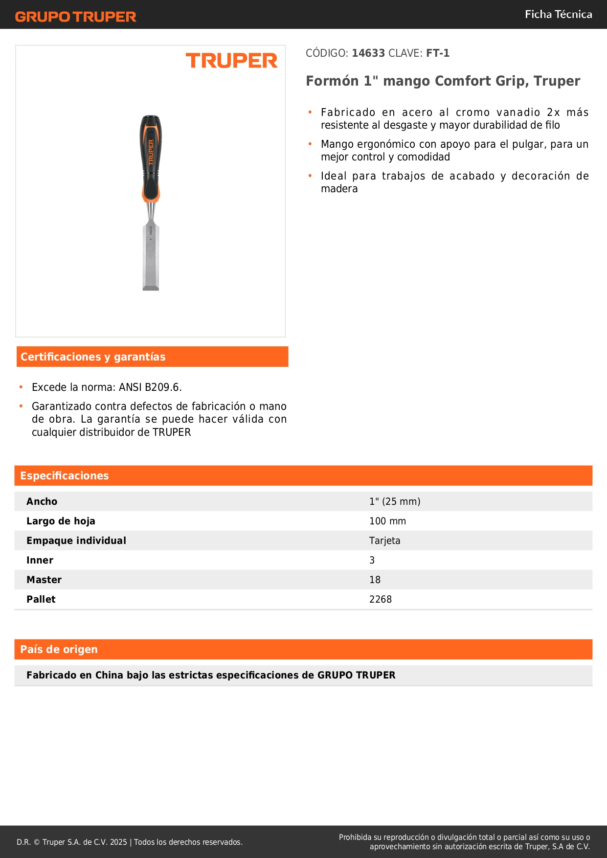 Formón 1'' mango comfort grip truper