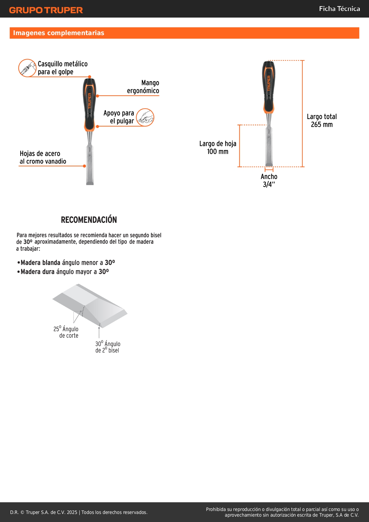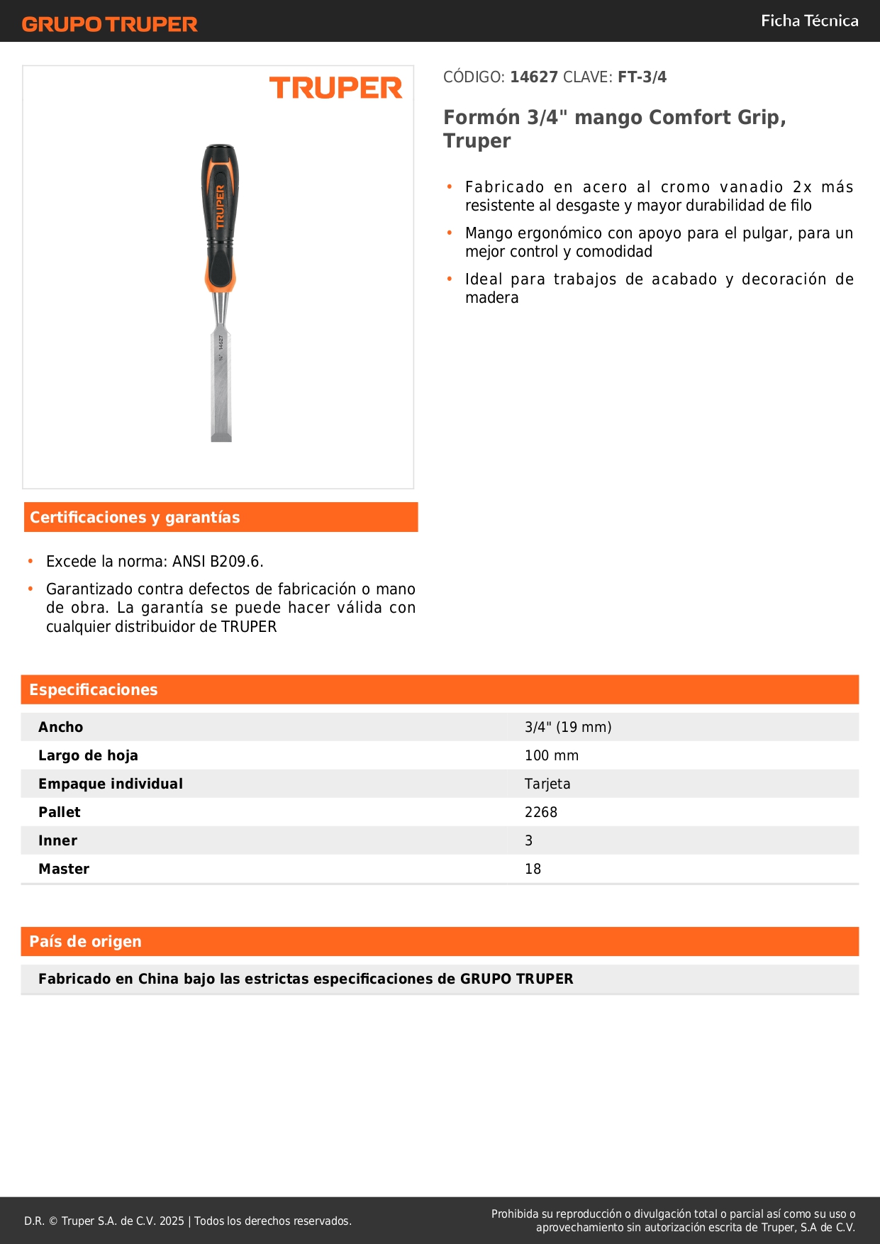 Formón 3/4'' mango comfort grip. truper