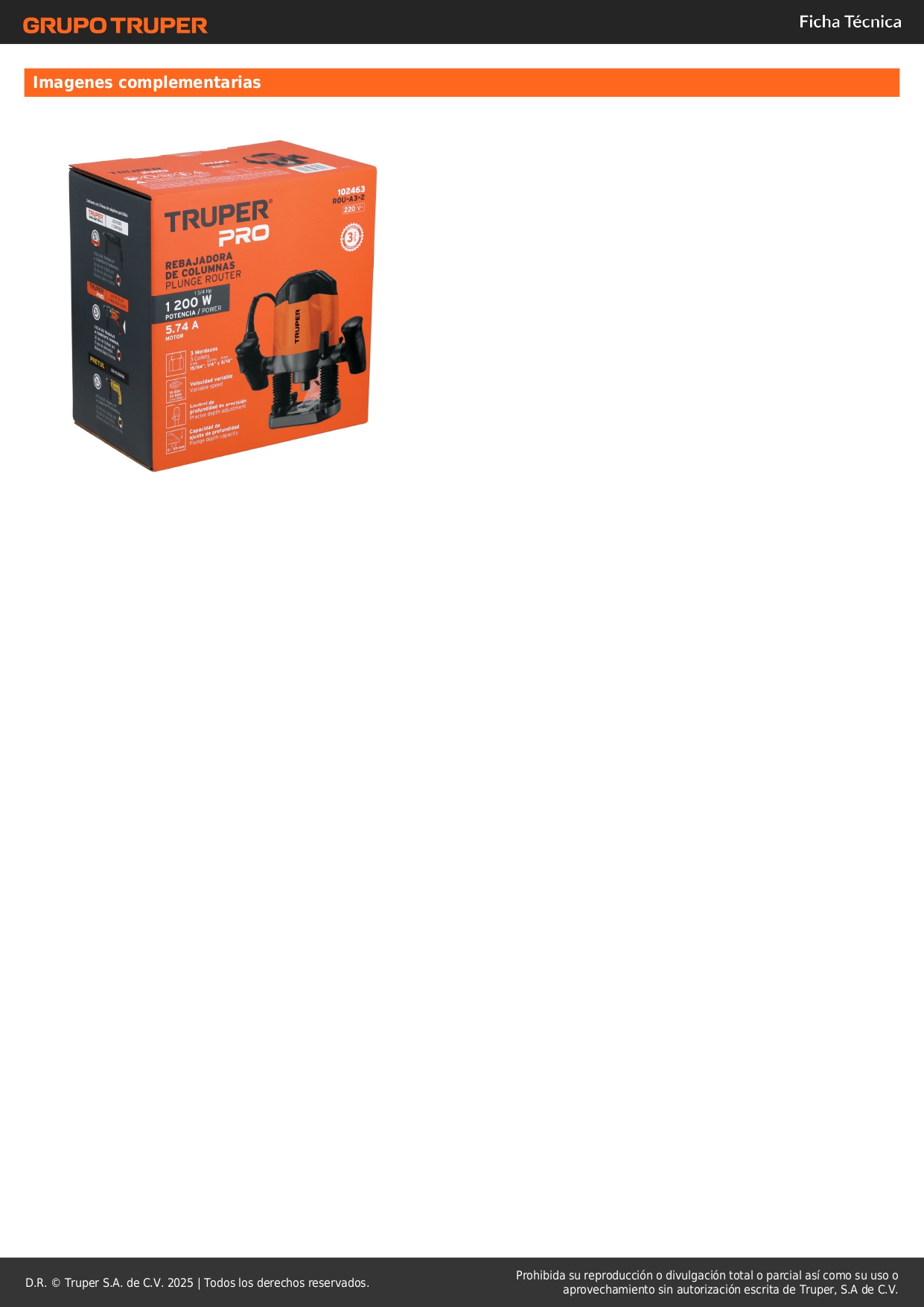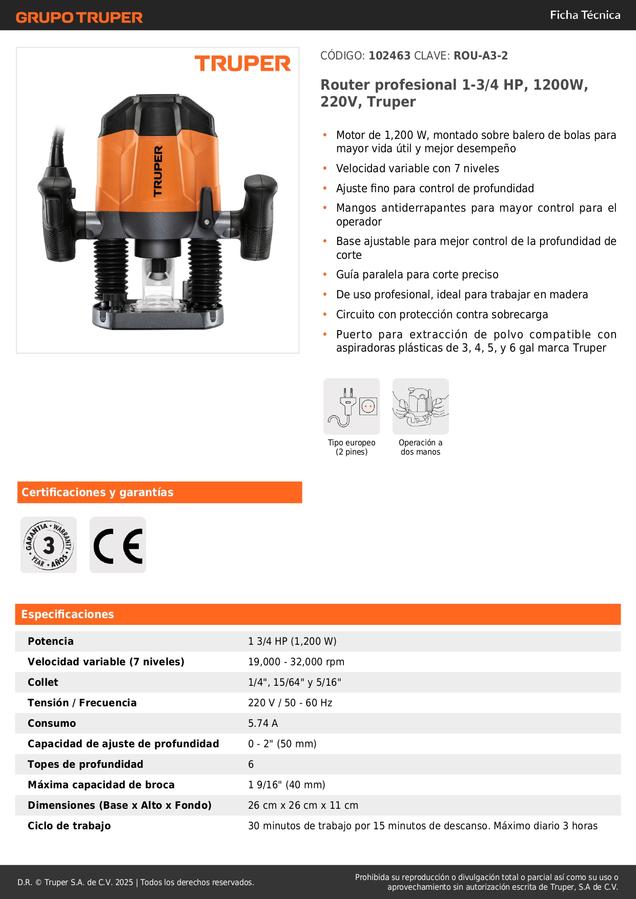 Router profesional 1-3/4 HP, 1200W, 220V, Truper