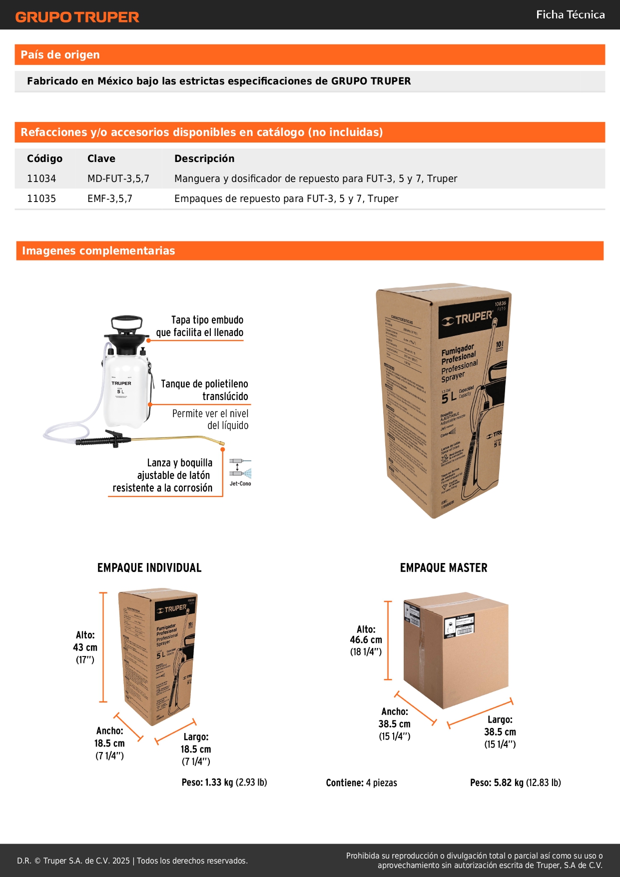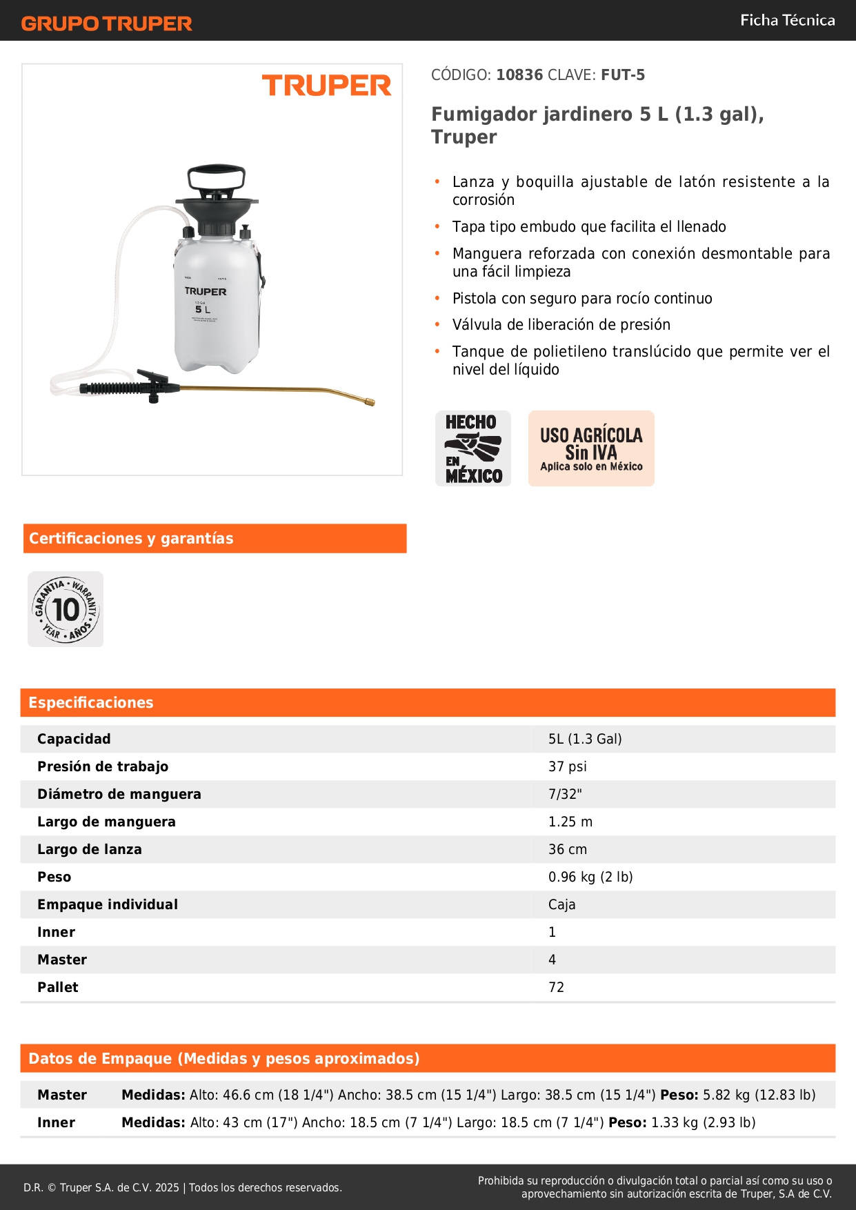 Capacidad 5L (1.3 Gal)