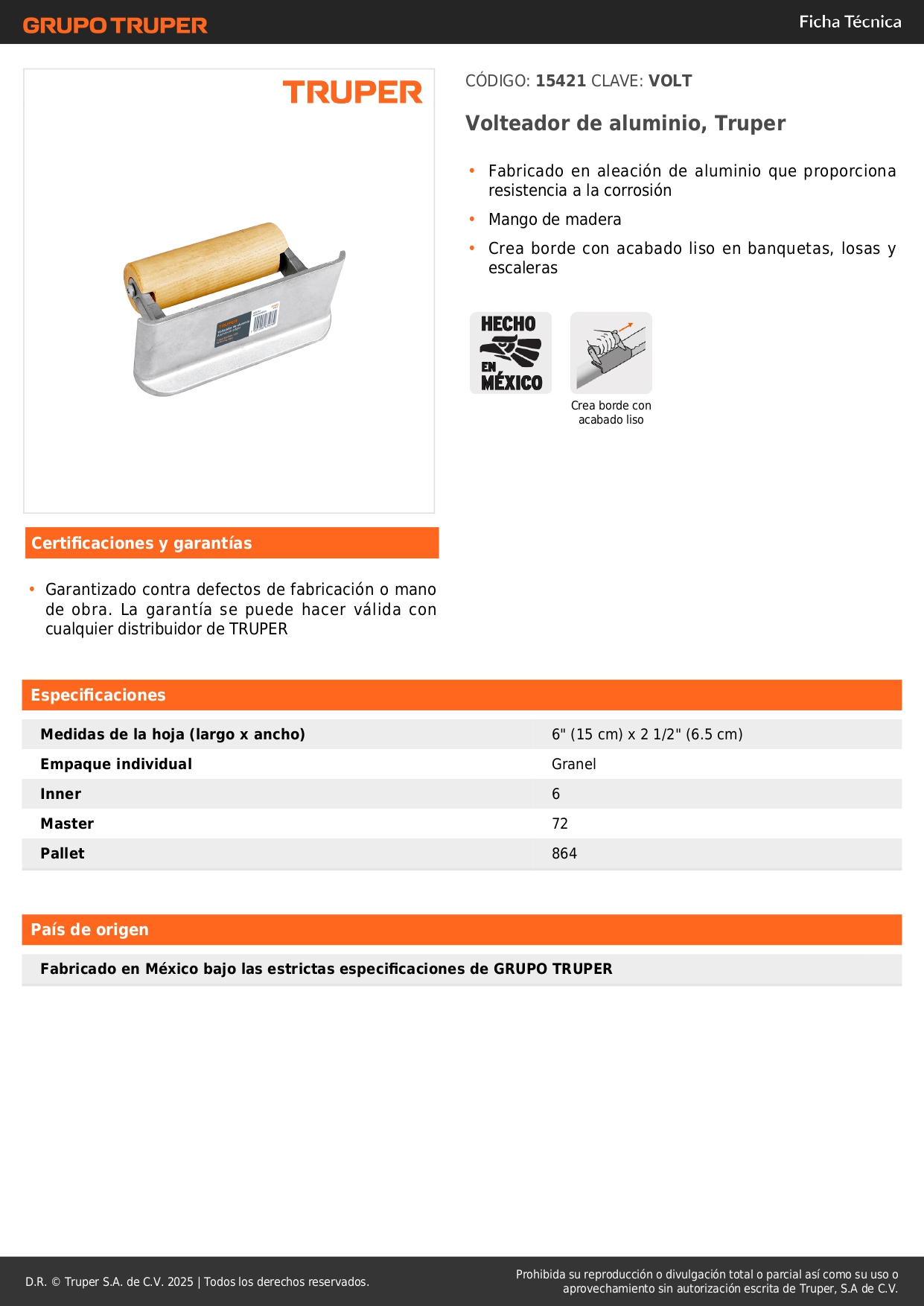 Volteador de aluminio, Truper