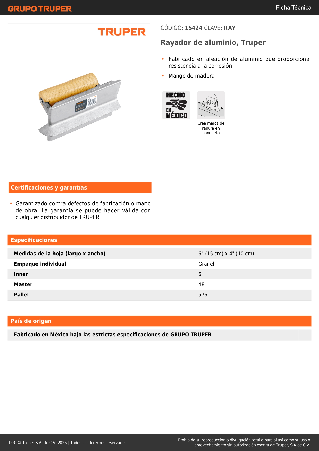 Rayador de aluminio, Truper