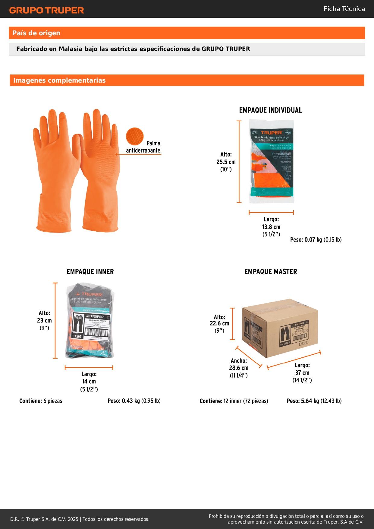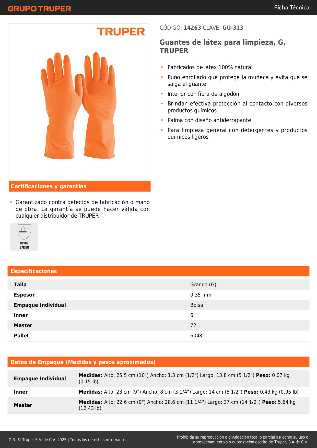 Guantes de látex para limpieza. grandes. truper