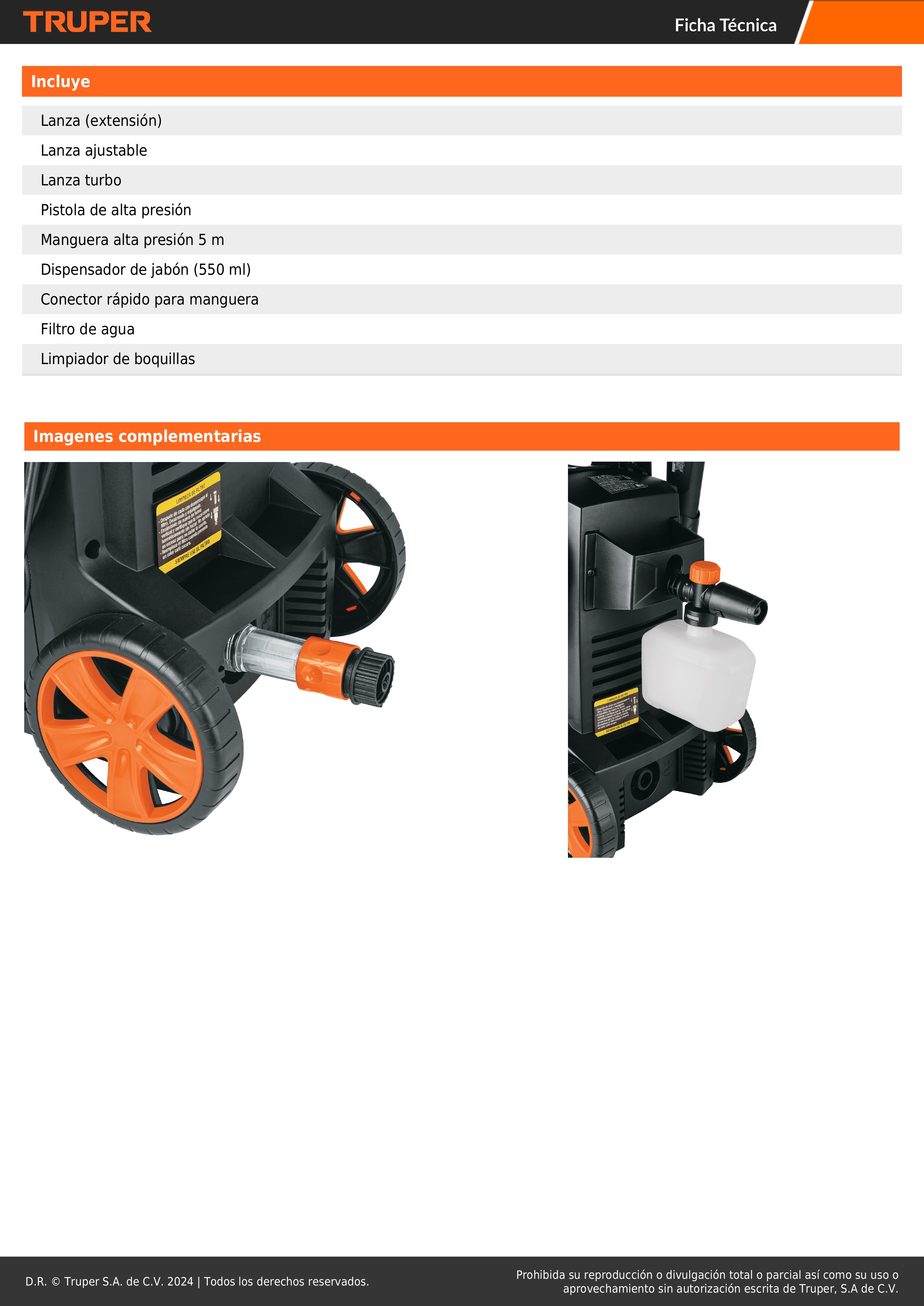 Hidrolavadora electrica alta presión 1800psi 1500w truper