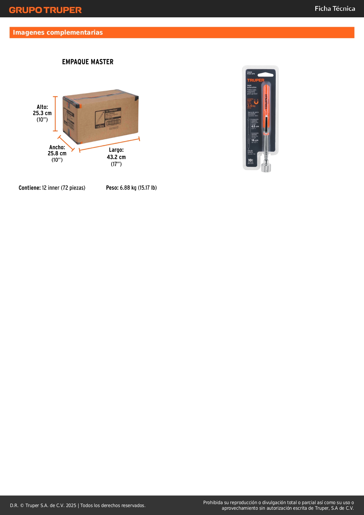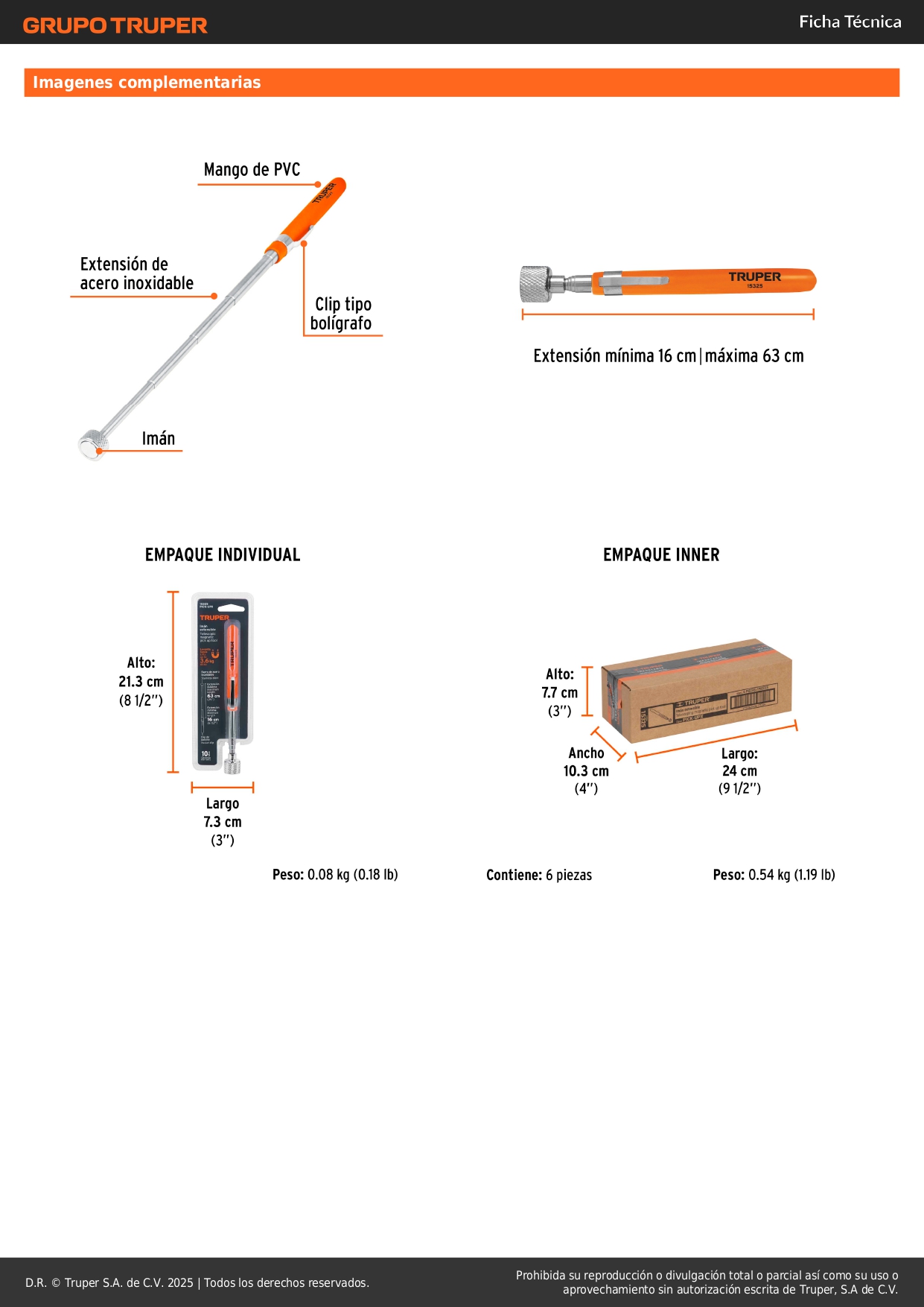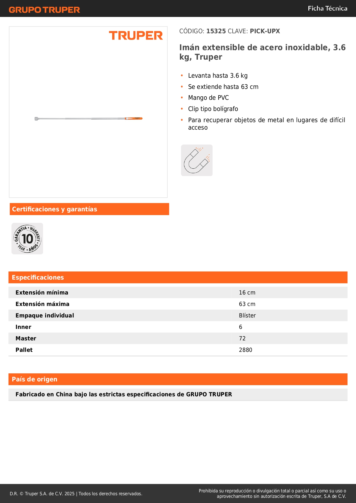 Imán extensible de acero inoxidable, 3.6 kg, Truper