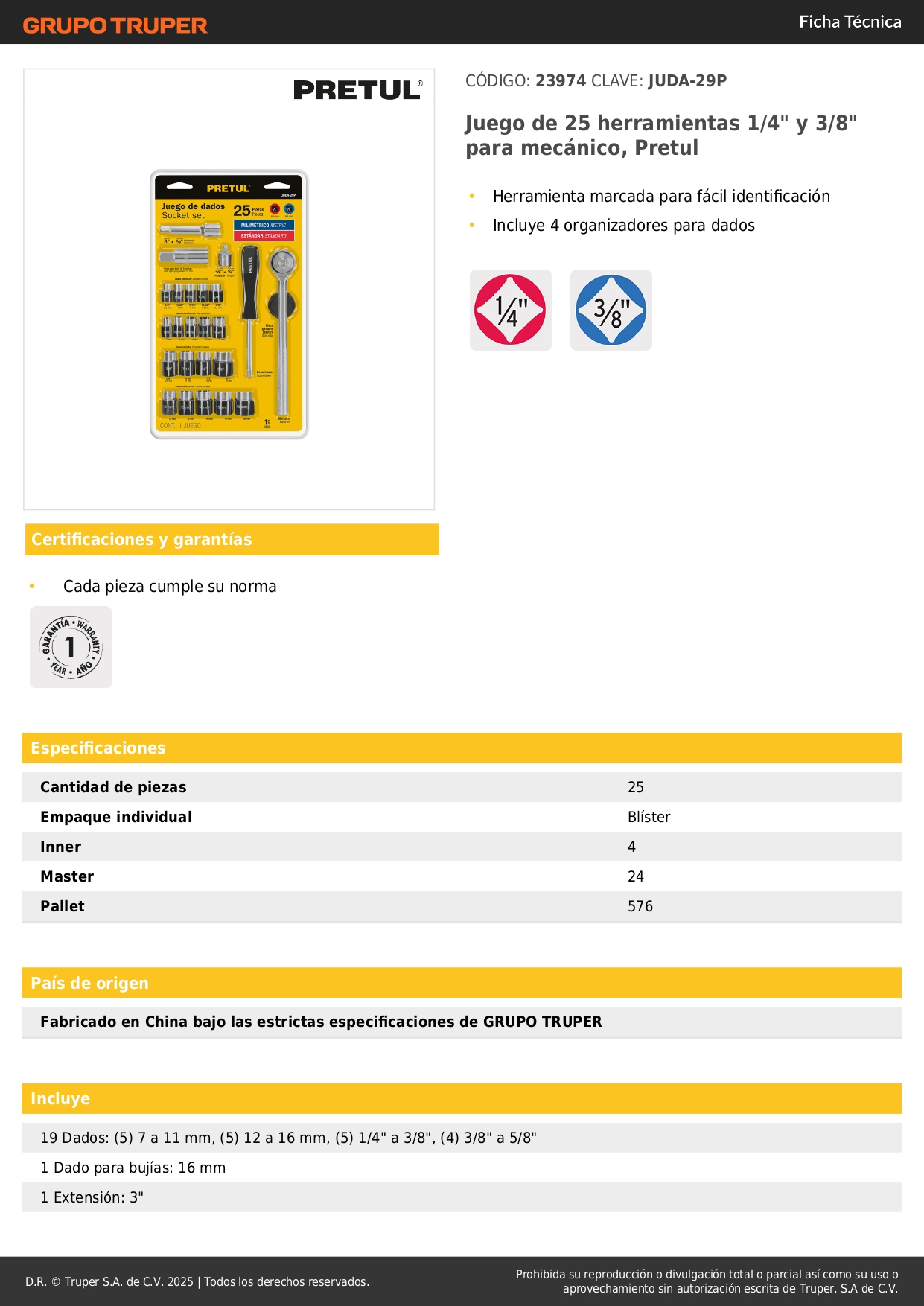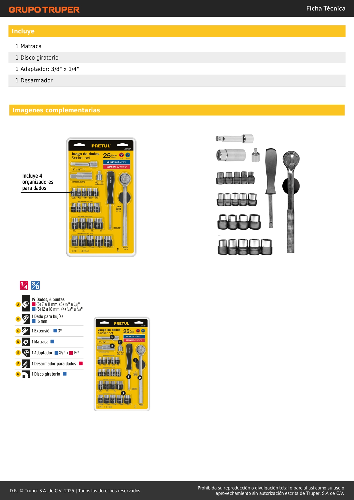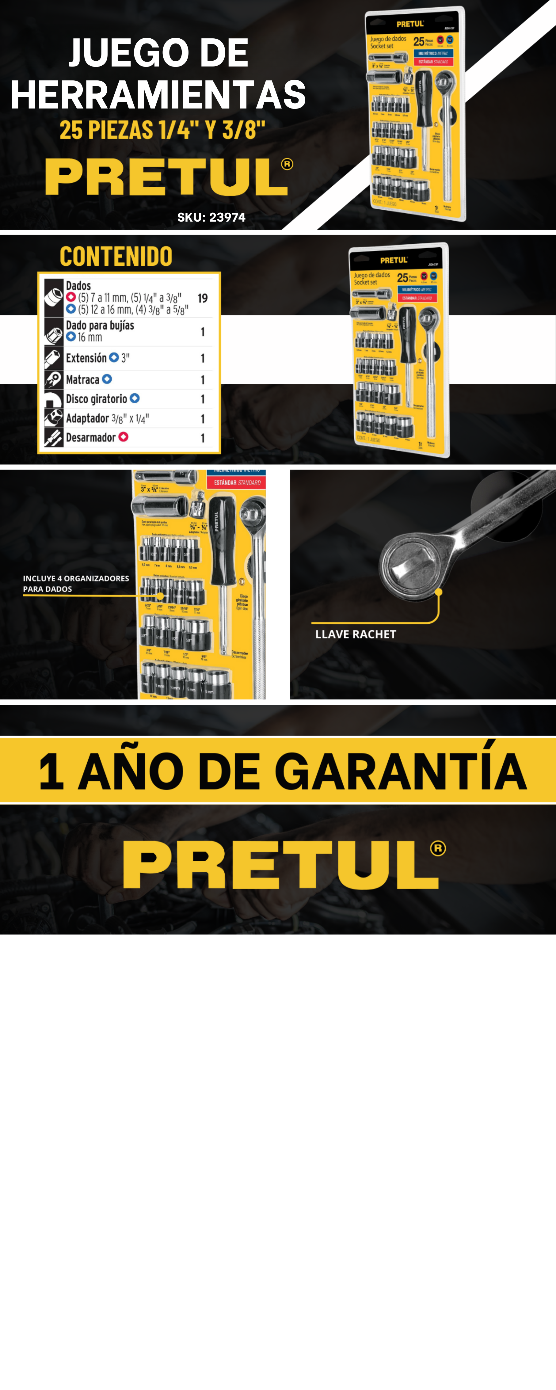 Juego de 25 herramientas 1/4" y 3/8" para mecánico, Pretul