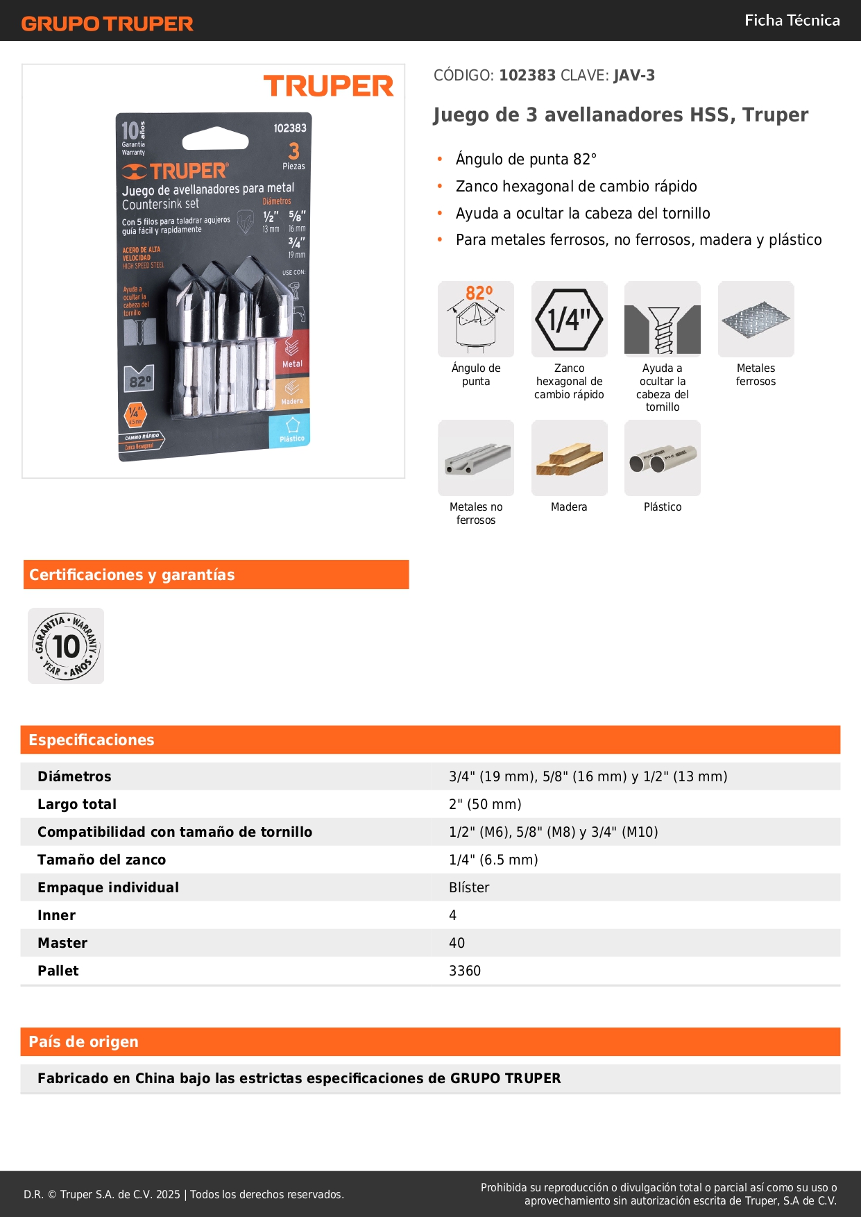 • Para metales ferrosos, no ferrosos, madera y plástico
