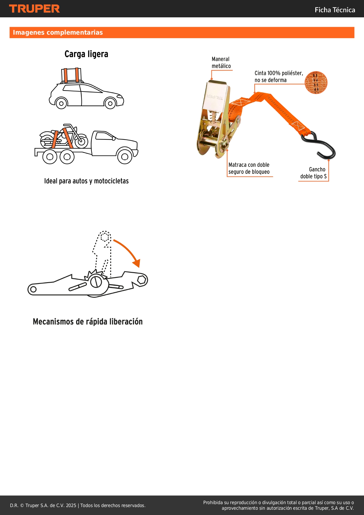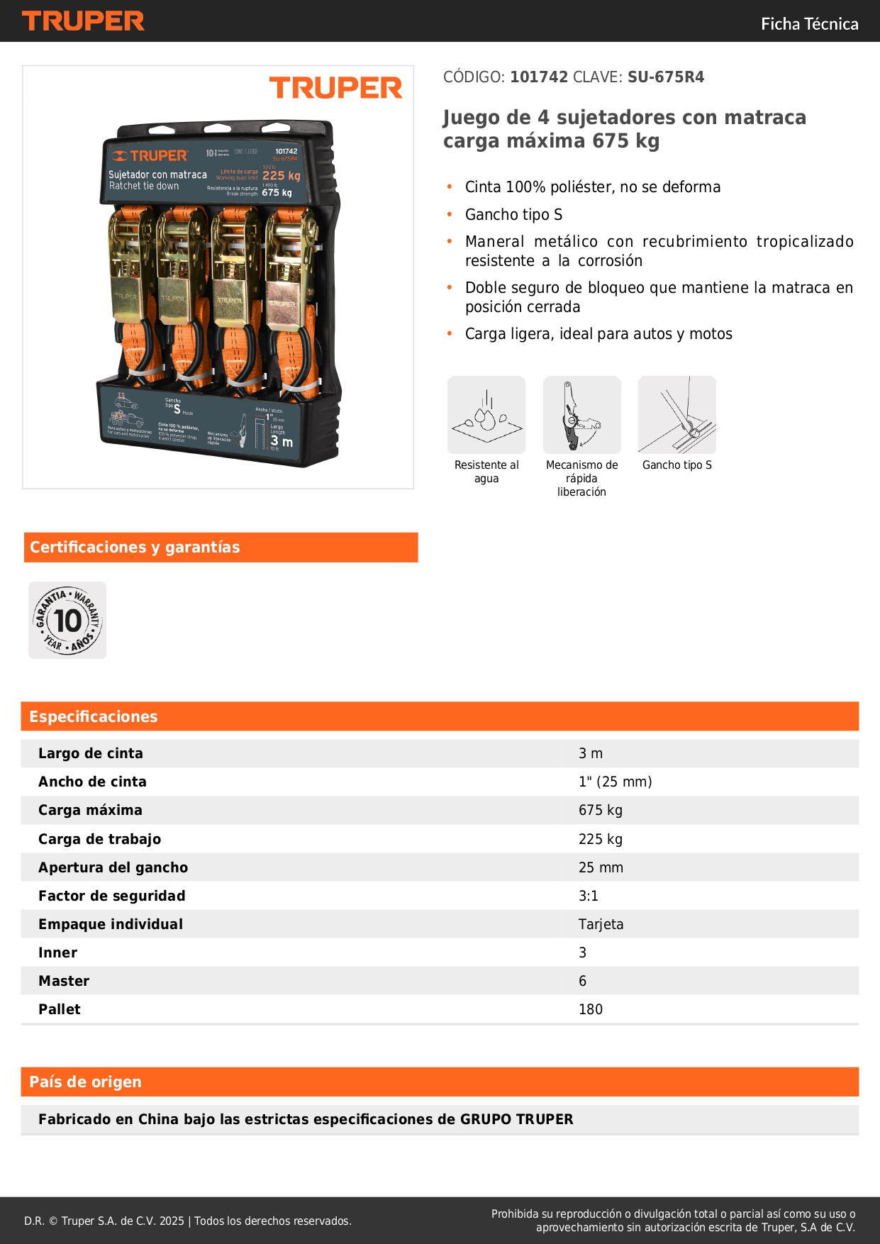 Juego de 4 sujetadores con ratchet carga máxima 675 kg truper