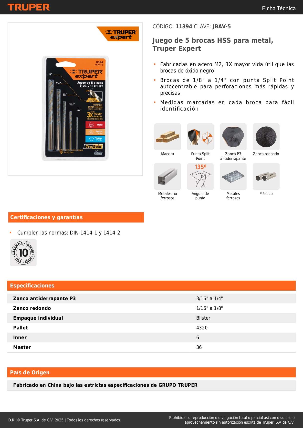 Brocas de 1/8" a 1/4" con punta Split Point autocentrable para perforaciones más rápidas y precisas