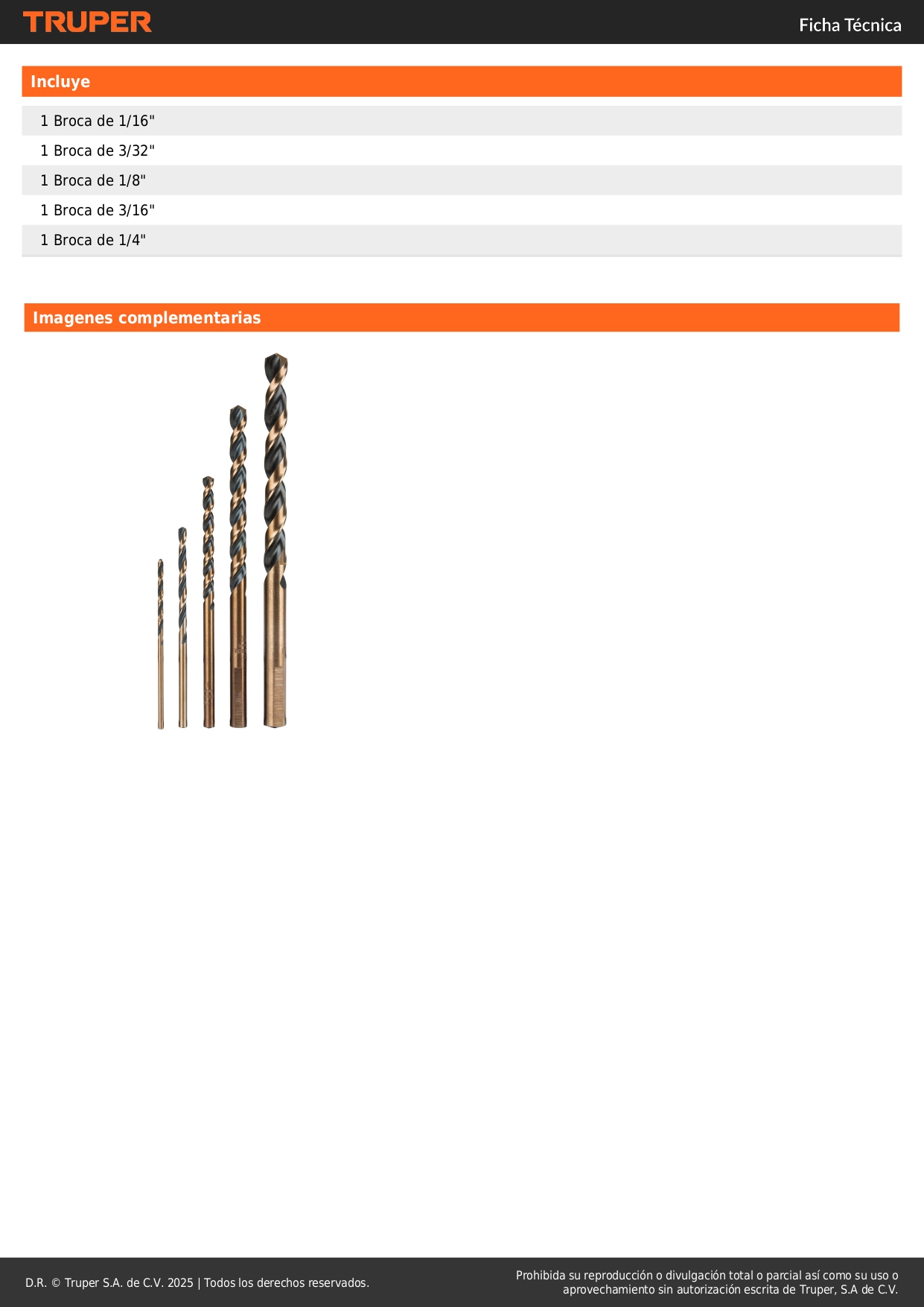 Medidas marcadas en cada broca para fácil identificación