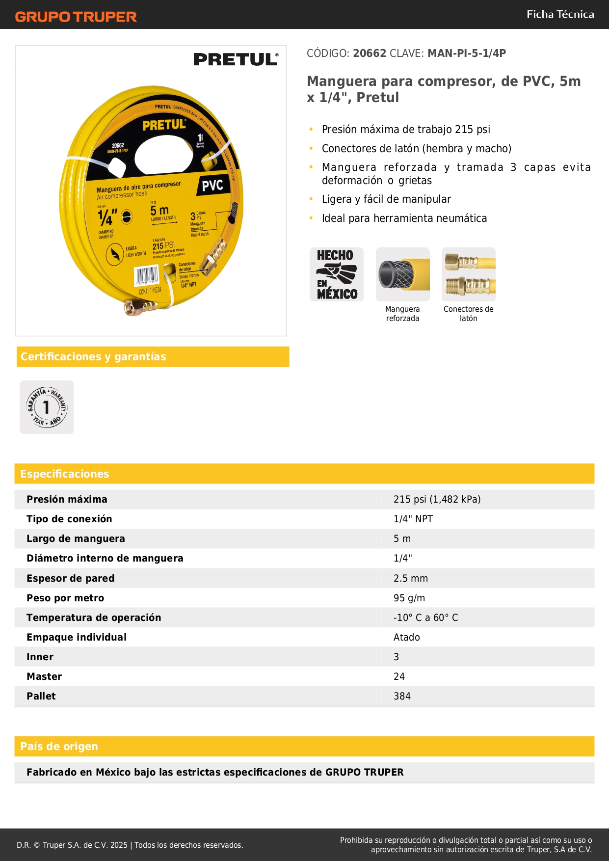 • Manguera reforzada y tramada 3 capas evita deformación o grietas