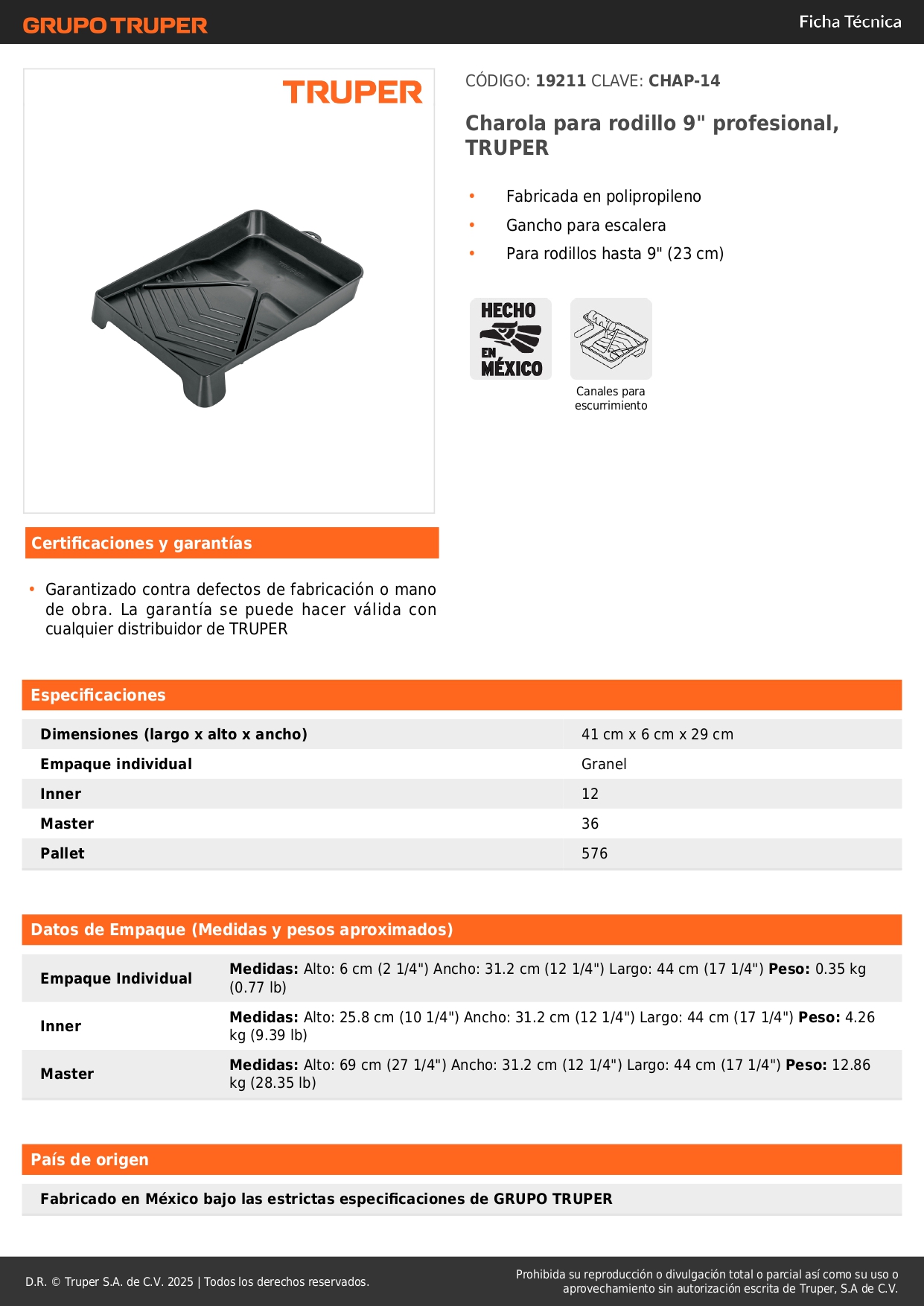 • Con rosca estándar para ajustar los rodillos y cepillos de pintor