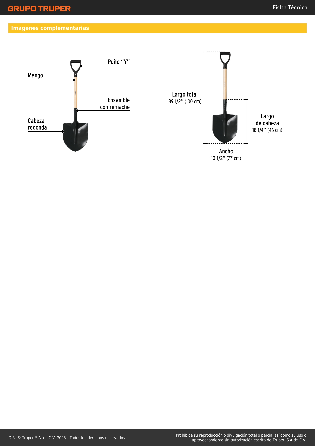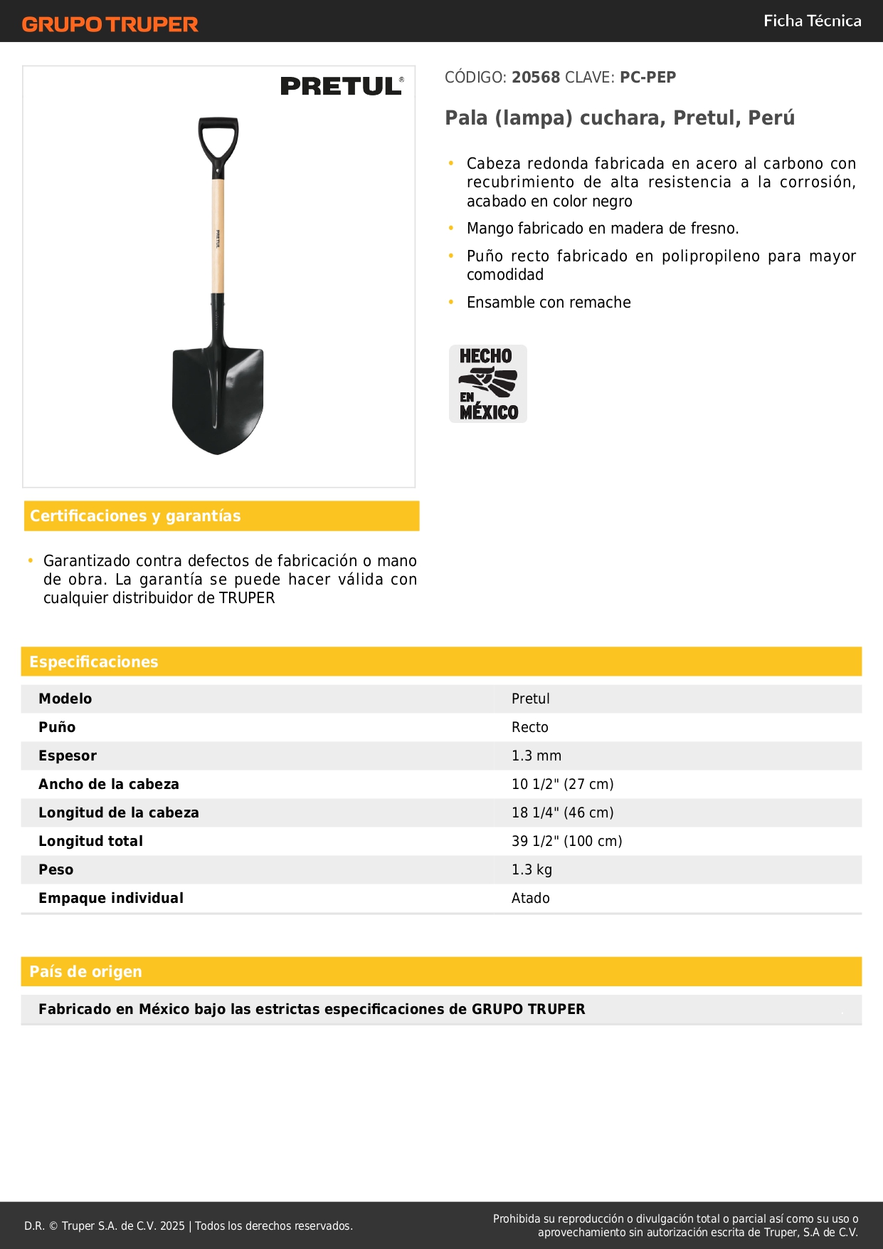 • Puño recto fabricado en polipropileno para mayor comodidad