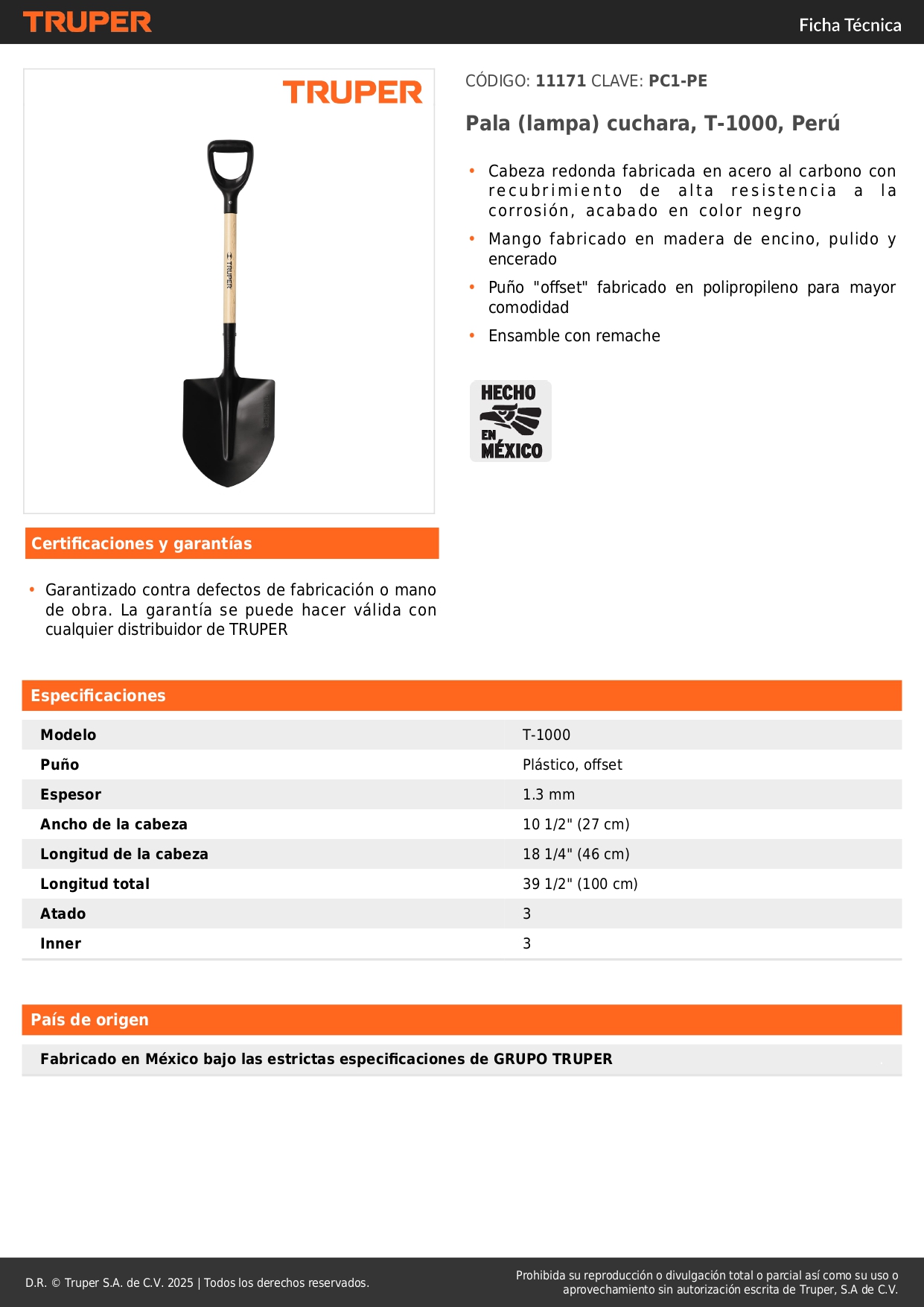 Lampa cuchara t-1000. puño ''y''. truper