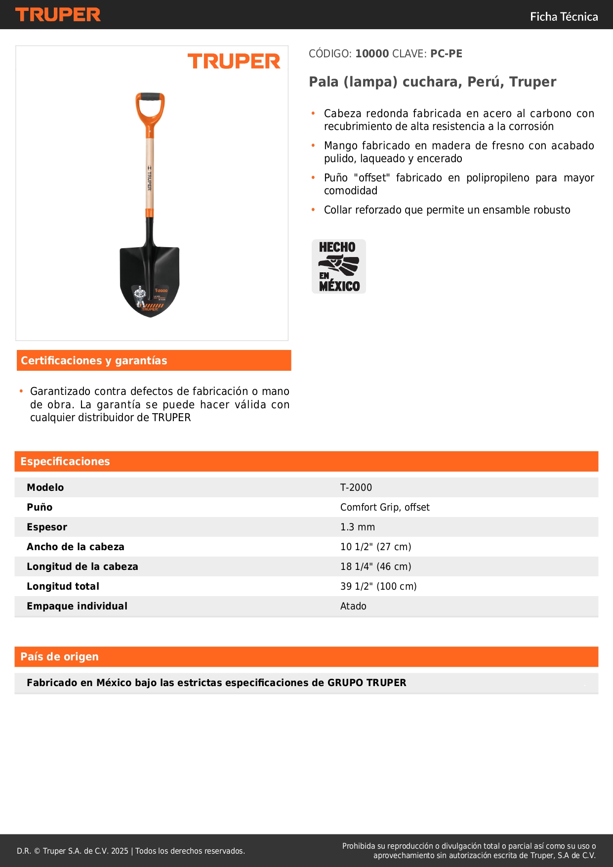 - Puño "offset" fabricado en polipropileno para mayor comodidad.