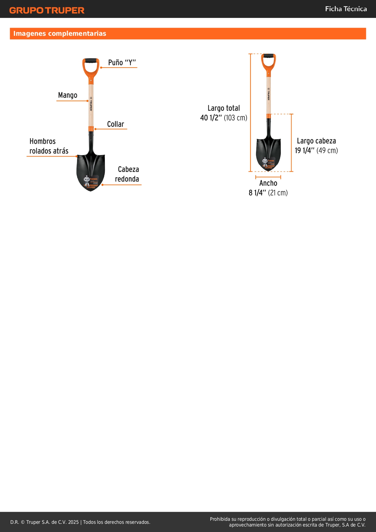 Largo de la cabeza: (B)19 3/8" (49 cm).