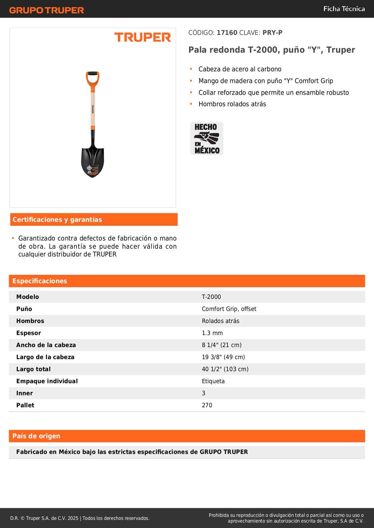 - Cabeza de acero al carbono con acabado en pintura epóxica en polvo negra.