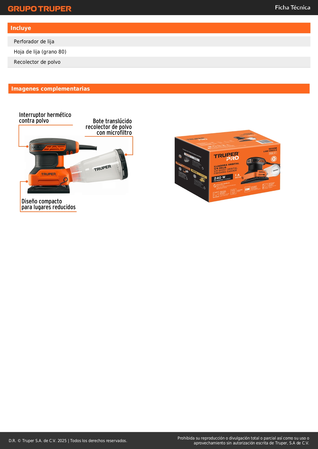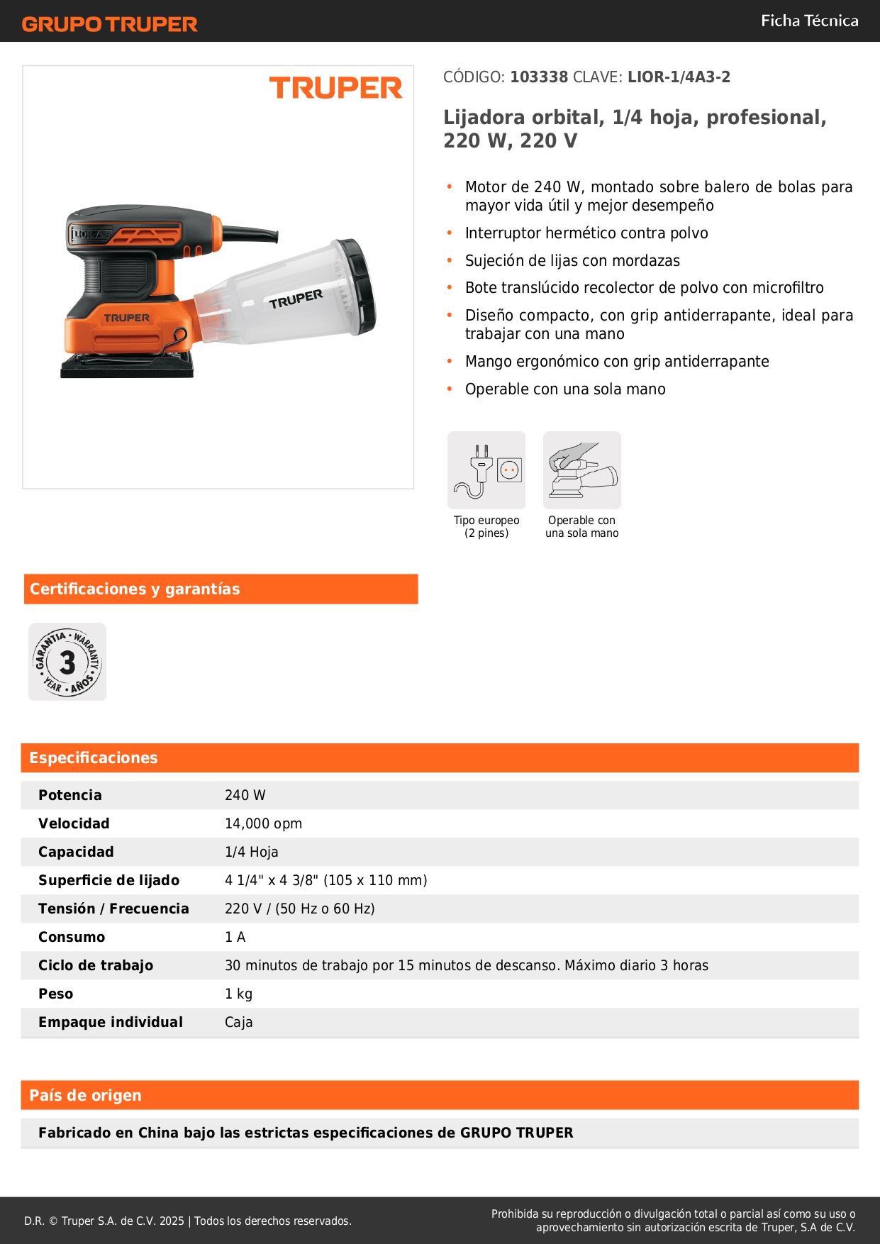 Lijadora orbital, 1/4 hoja, profesional, 220 W, 220 V