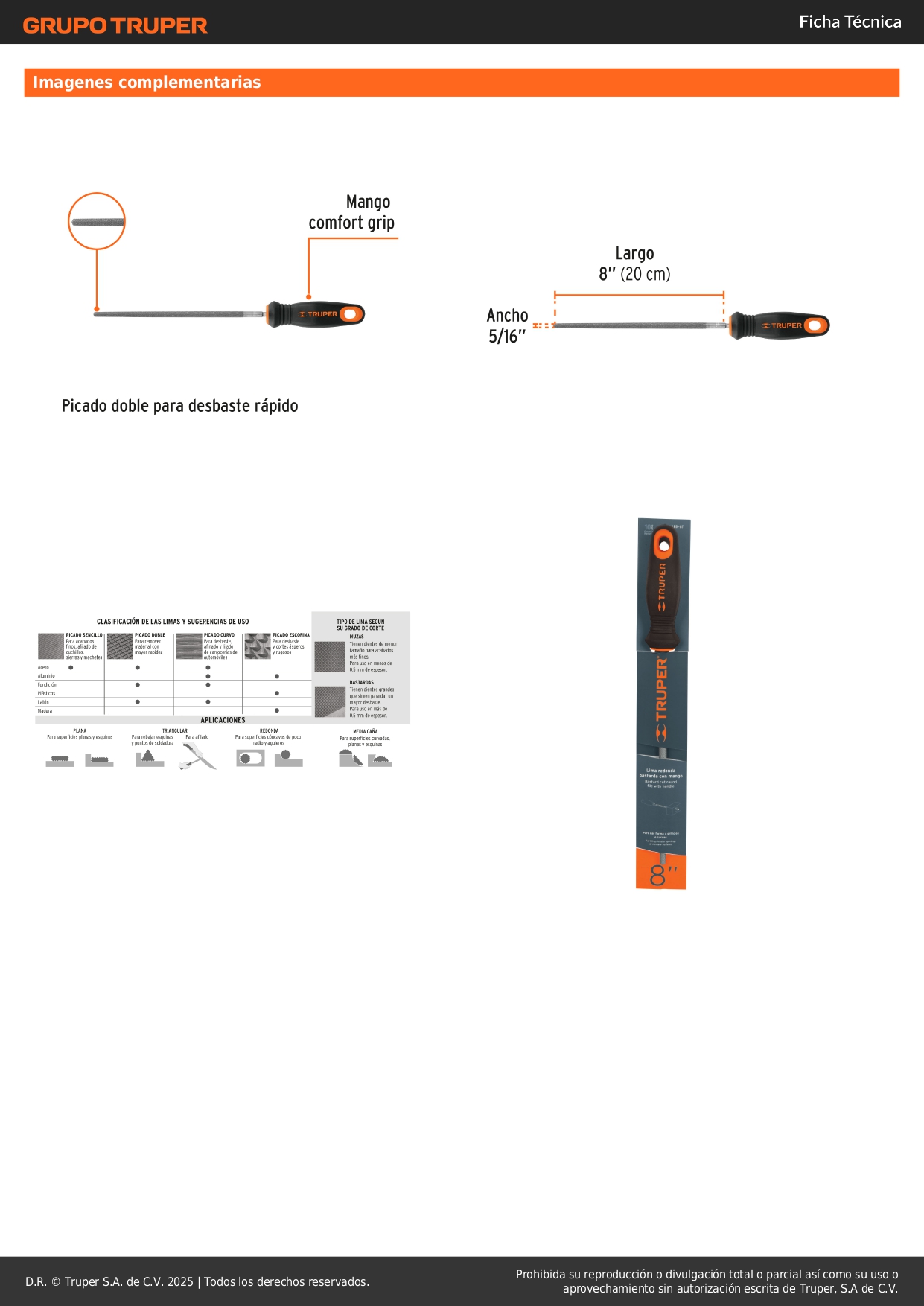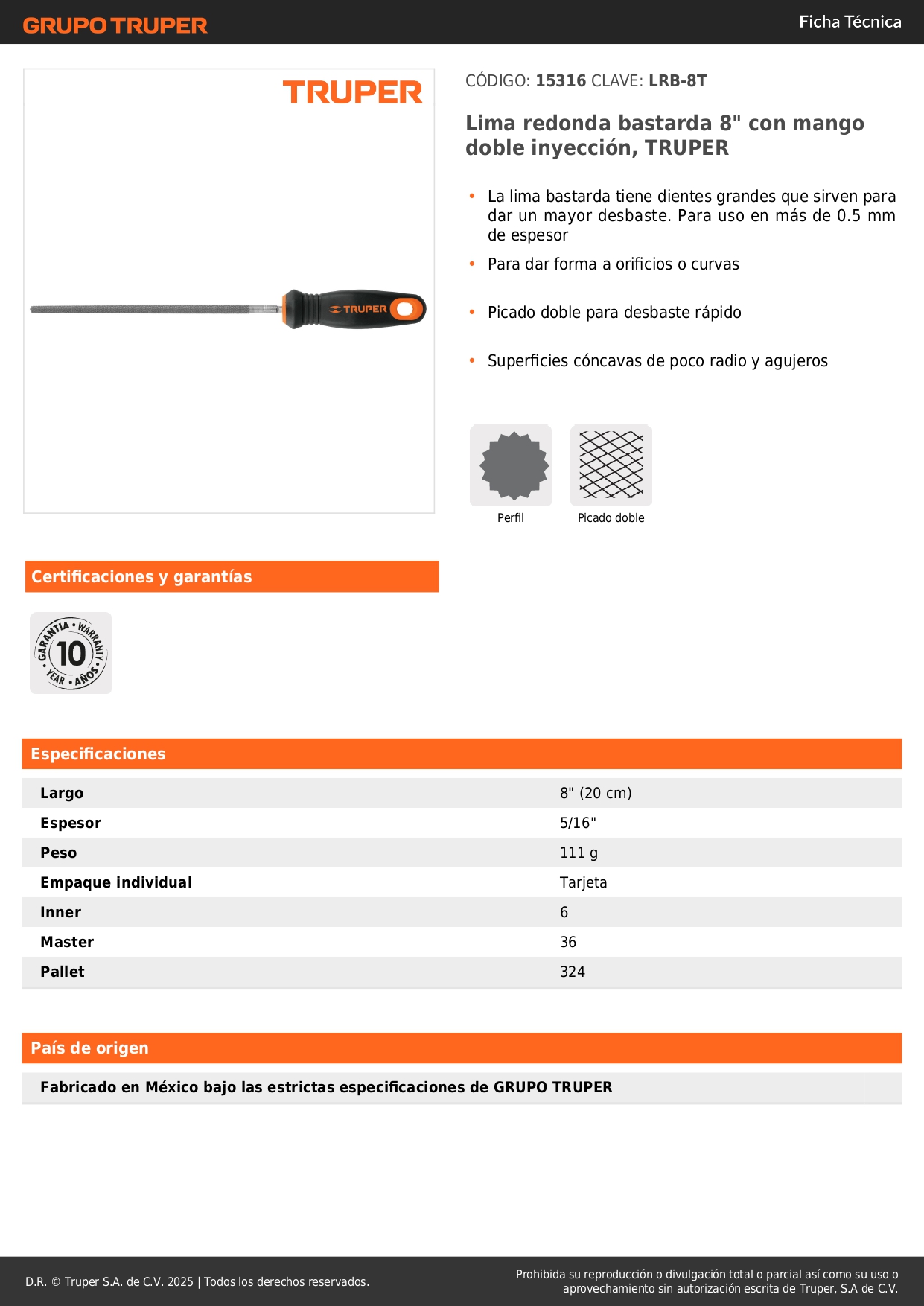 Lima redonda bastarda 8'' con mango doble inyección. truper