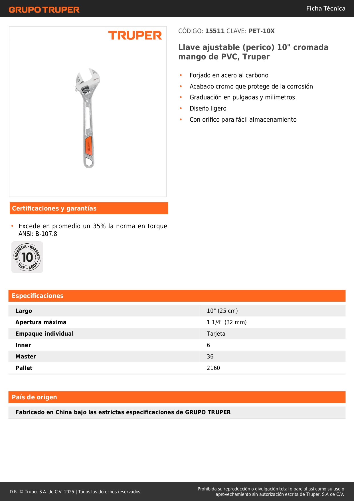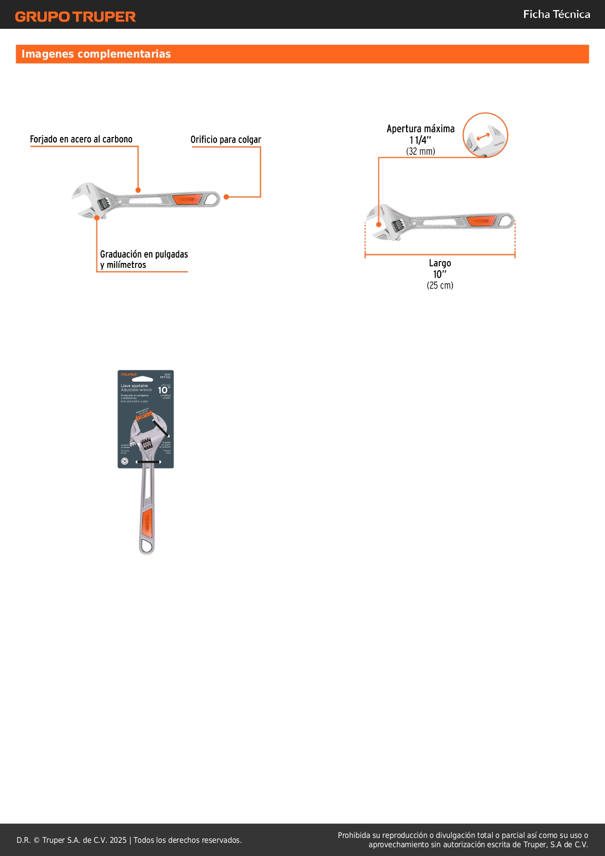 Llave francesa 10'' cromada mango de pvc truper S/ 26.00 Agregar al carro Avísame cuando llegue -Forjado en acero al carbono-Acabado cromo que protege de la corrosión-Graduación en pulgadas y milímetros-Diseño ligero-Con orifico para fácil almacenamiento