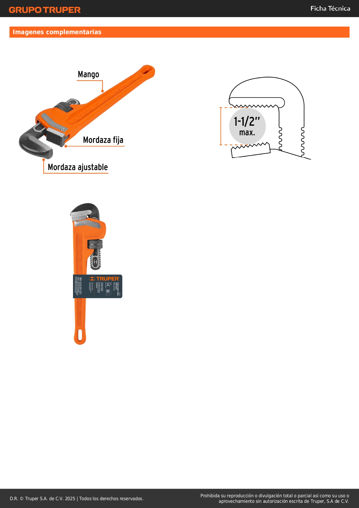 Llave stilson 14'' cuerpo robusto de hierro dúctil. truper